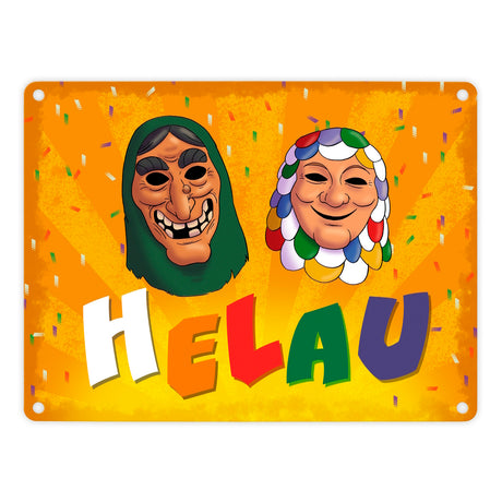 - 1x Helau Mainzer Fastnacht Metallschild mit Kostümmasken in der gewählten Größe