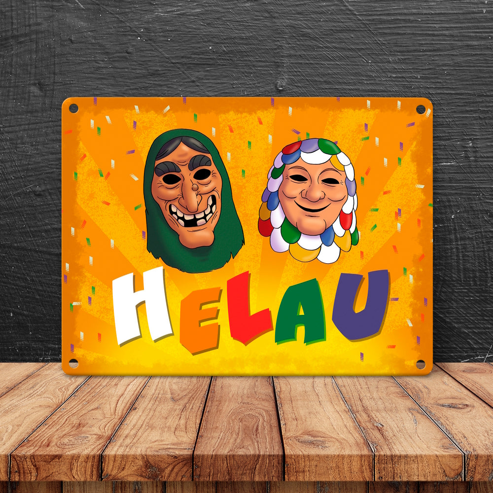 Helau Mainzer Fastnacht Metallschild mit Kostümmasken - 15x20 cm ist auf Lager und wird versandt, sobald es wieder verfügbar ist