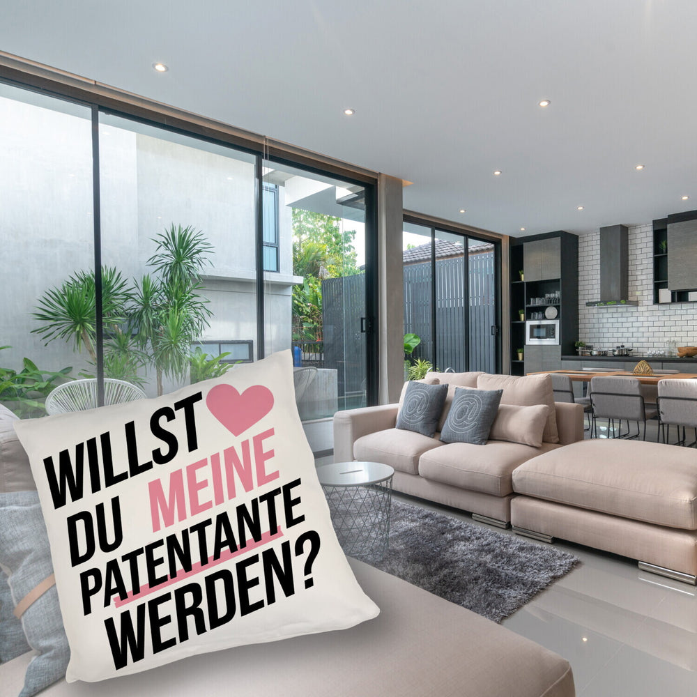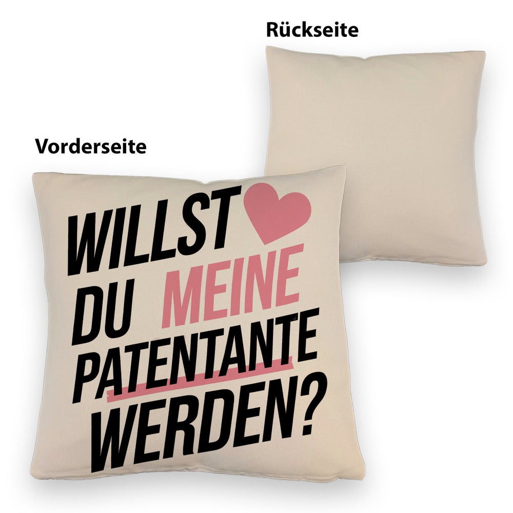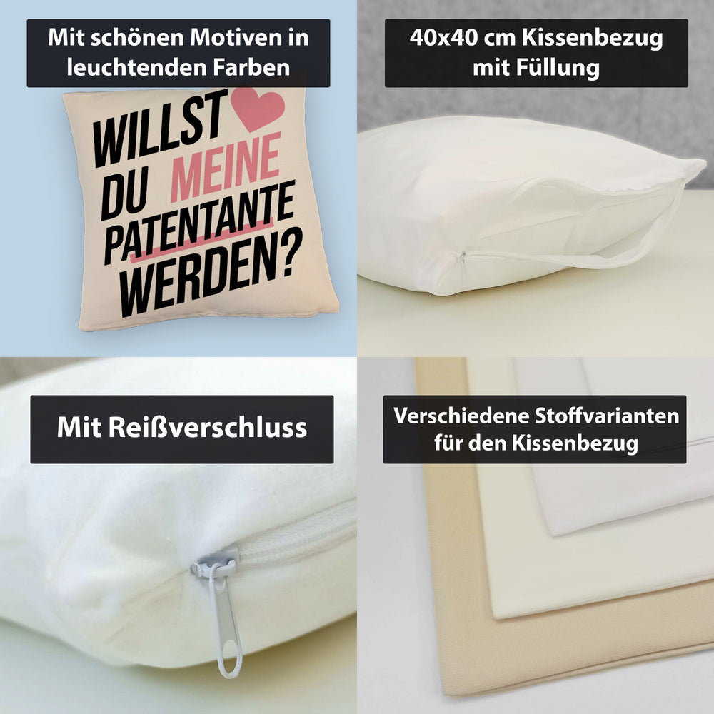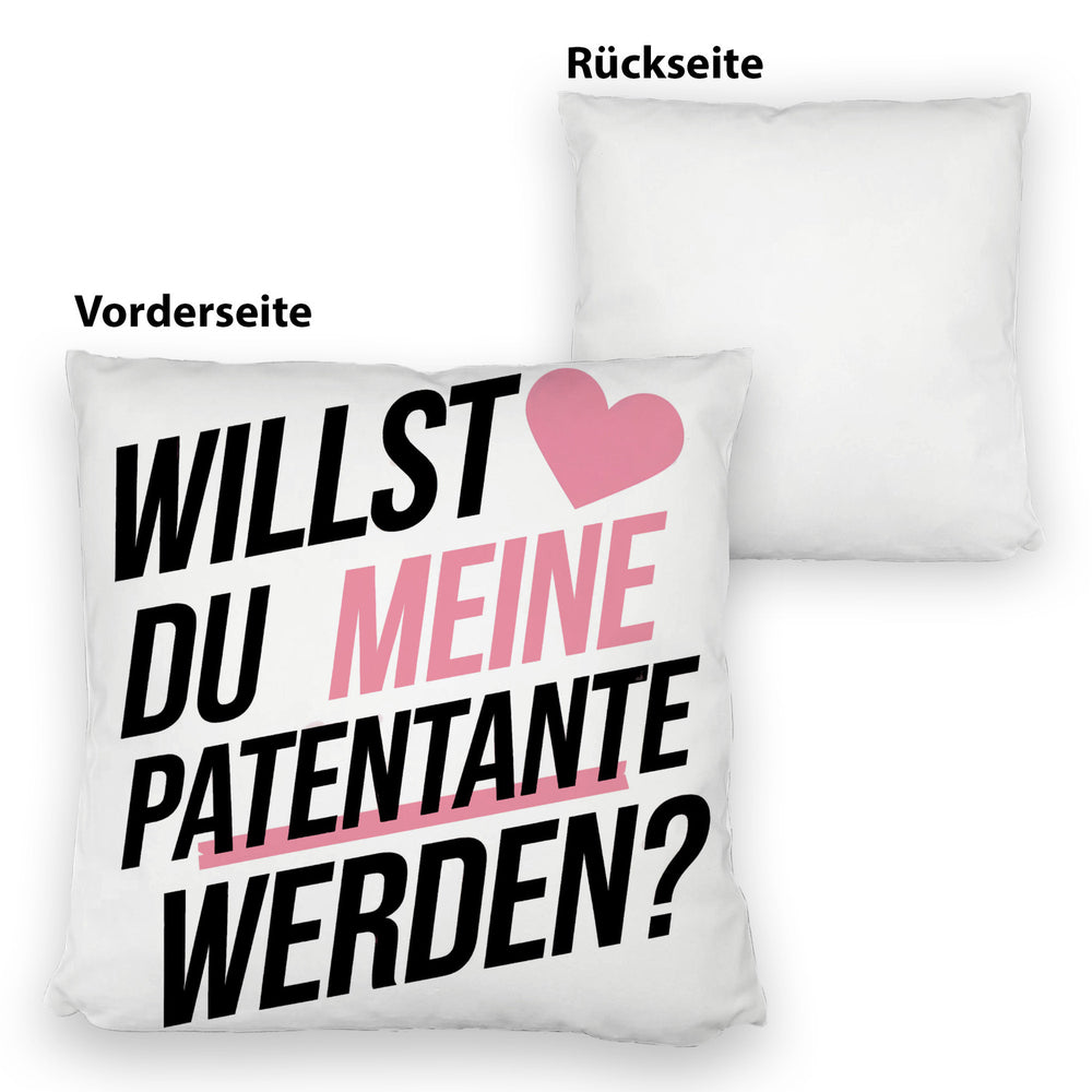 - Stell dir vor, ein Kissen, das nicht nur bequem ist, sondern auch eine große Frage stellt! Unser Patentante werden - Kissen ist mit einem stylischen Design in Schwarz, Weiß und Pink ein echter Hingucker. Dieses Kissen fragt mit Herzklopfen: "Willst du meine Patentante werden?". Ein Must-Have für zukünftige Lieblingspatentanten!
