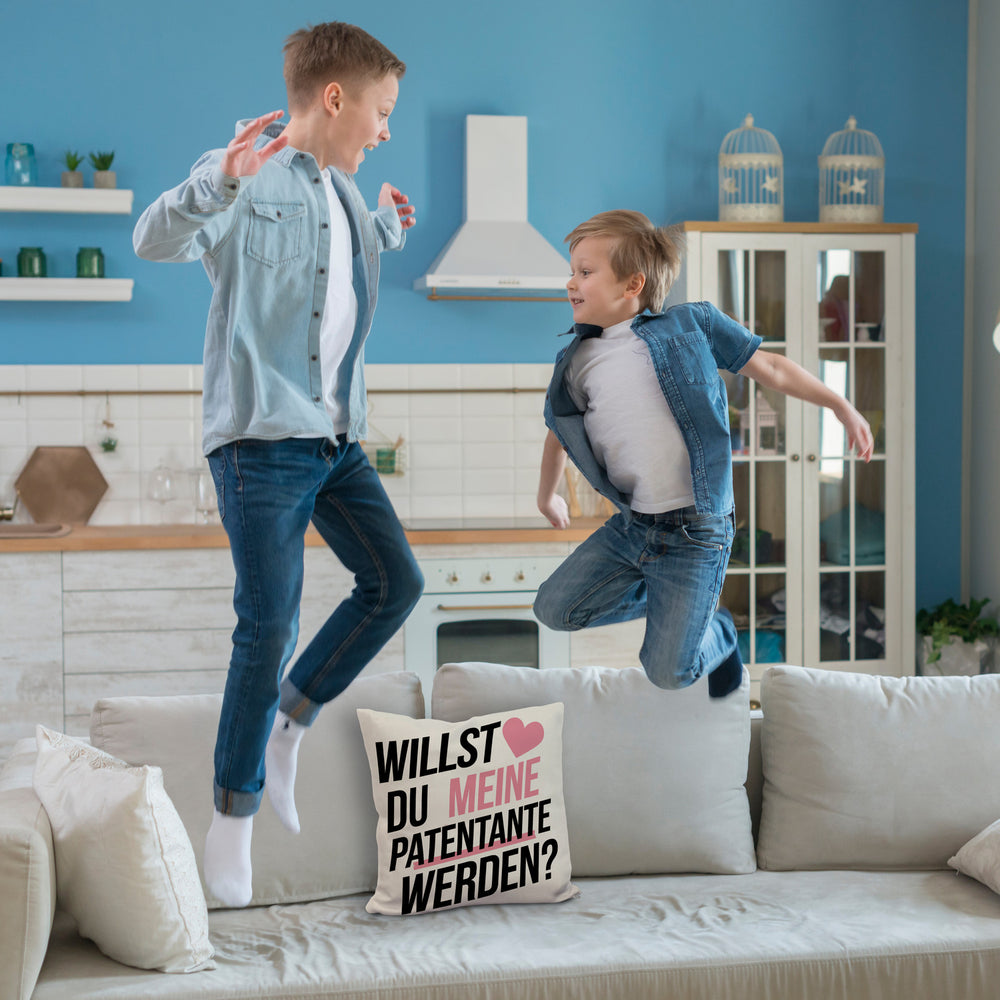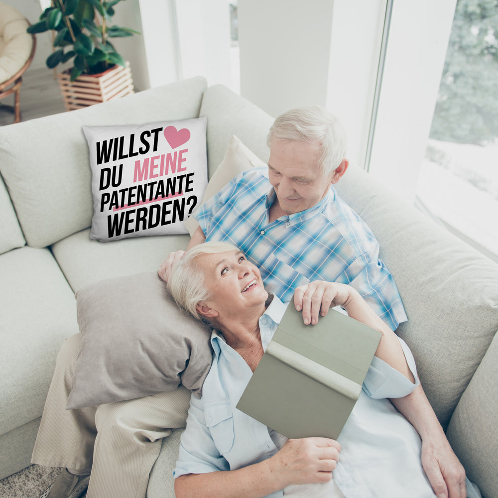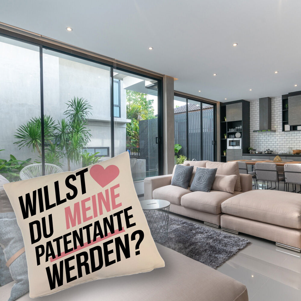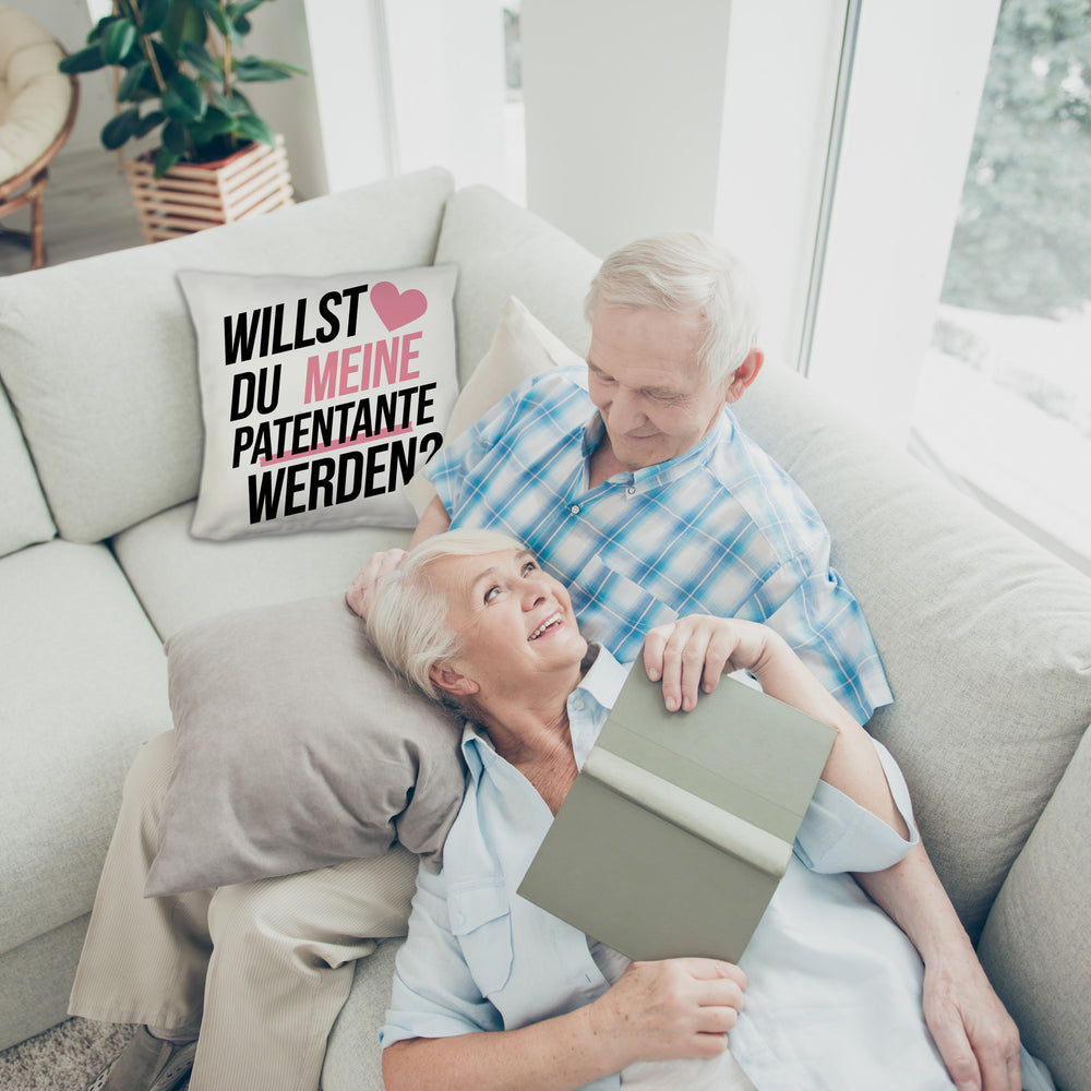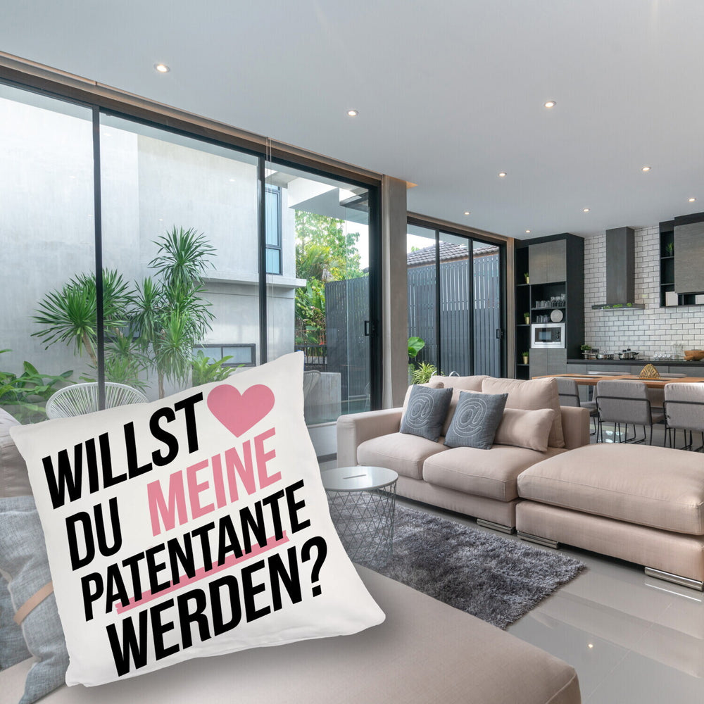 - Stell dir vor, ein Kissen, das nicht nur bequem ist, sondern auch eine große Frage stellt! Unser Patentante werden - Kissen ist mit einem stylischen Design in Schwarz, Weiß und Pink ein echter Hingucker. Dieses Kissen fragt mit Herzklopfen: "Willst du meine Patentante werden?". Ein Must-Have für zukünftige Lieblingspatentanten!