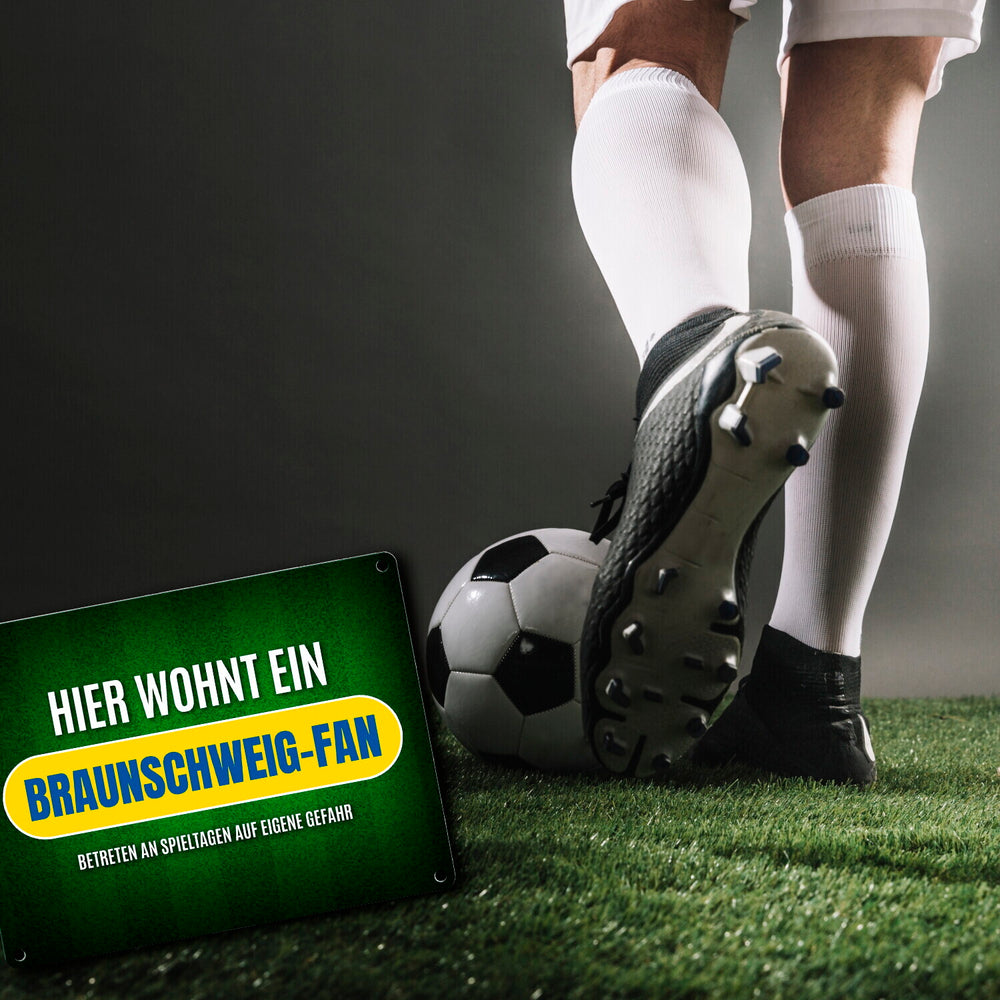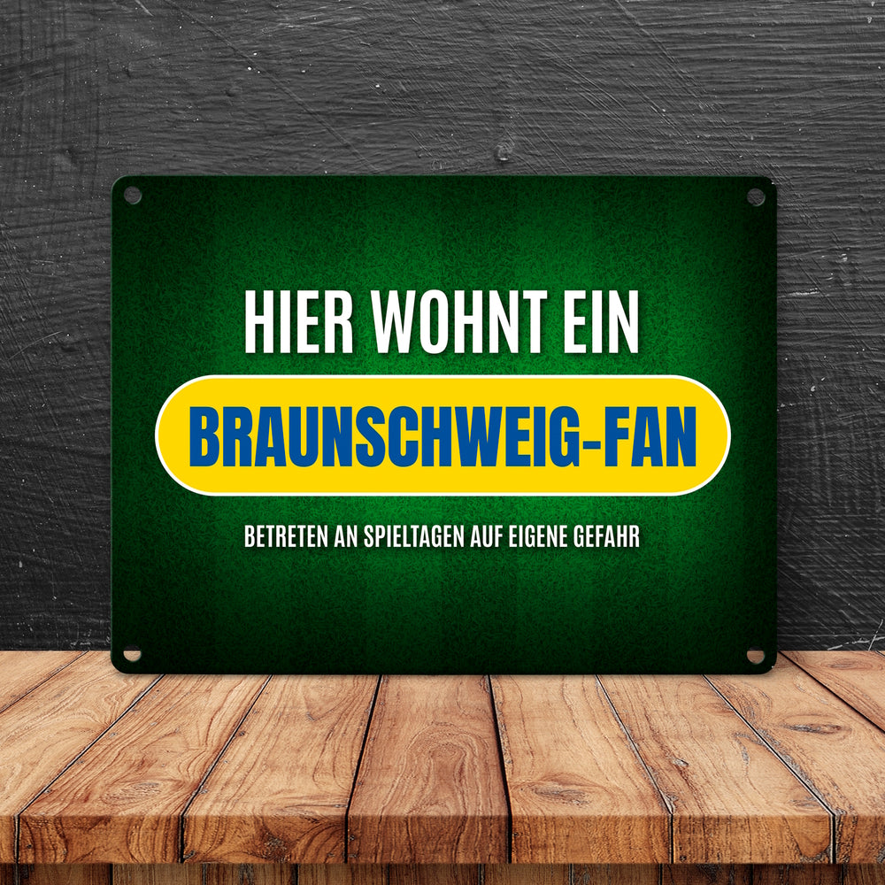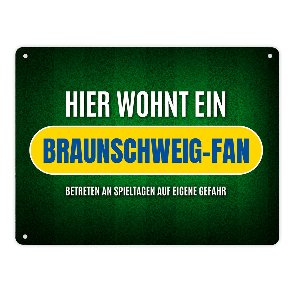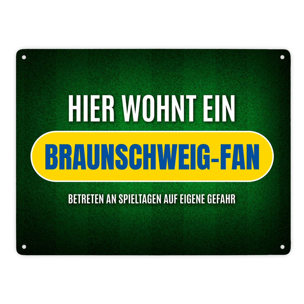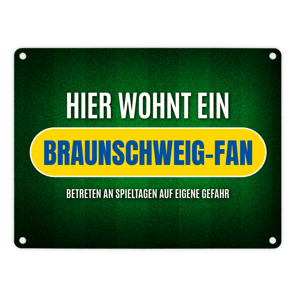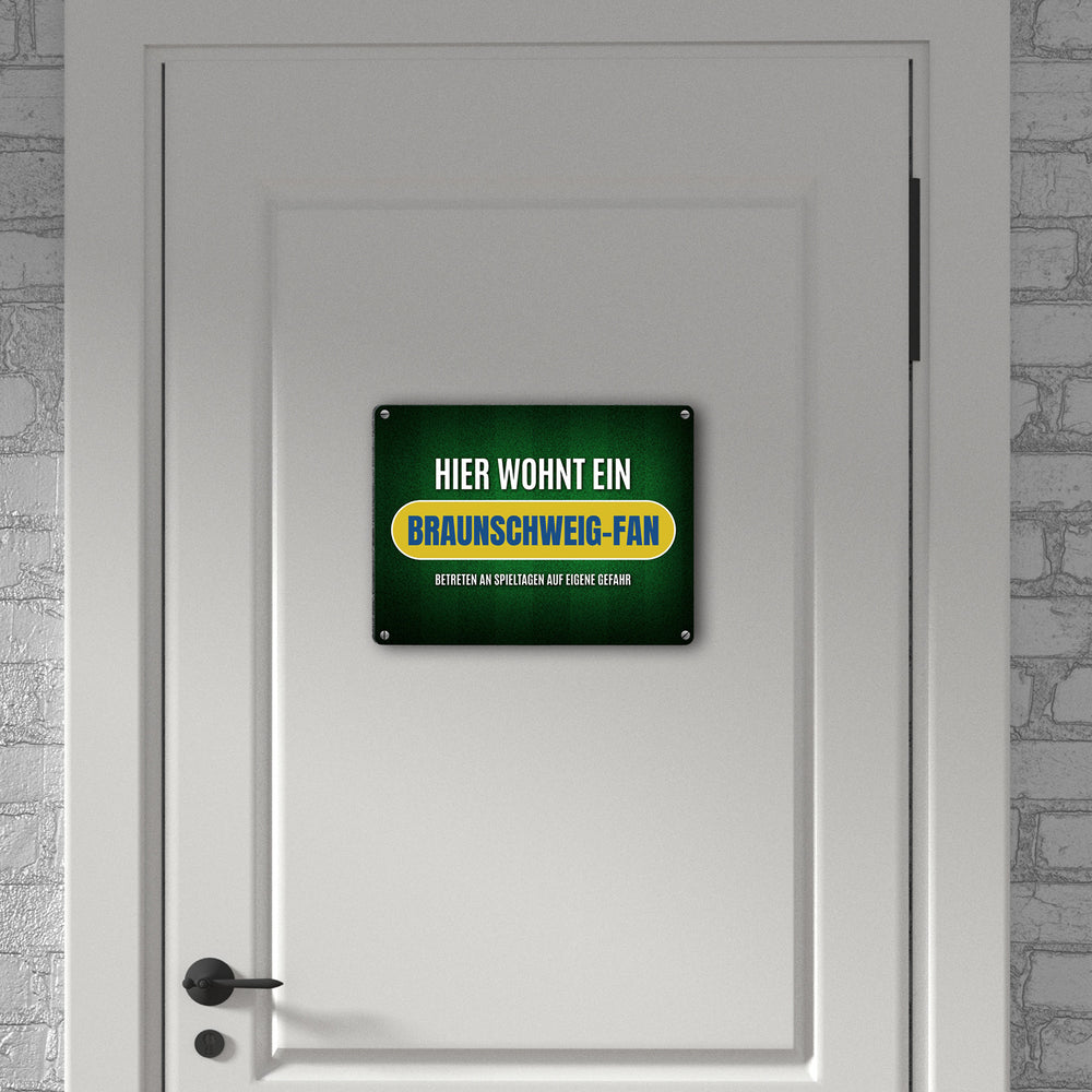 • 1x Hier wohnt ein Braunschweig-Fan Metallschild mit Rasen Motiv in der gewählten Größe