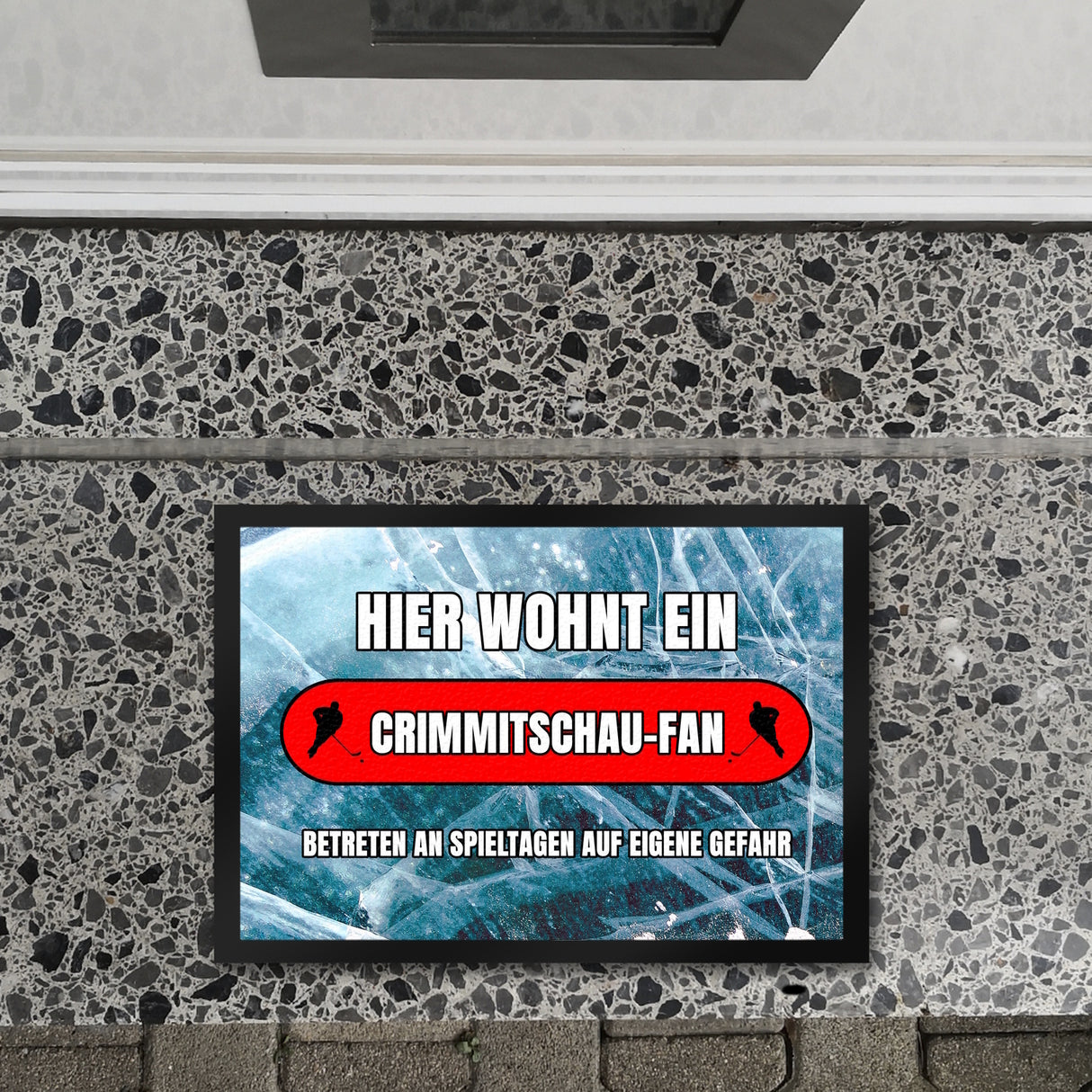 Hier wohnt ein Crimmitschau-Fan Fußmatte in 35x50 cm mit Eishallen Boden-Motiv