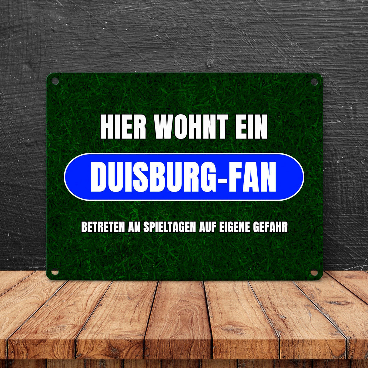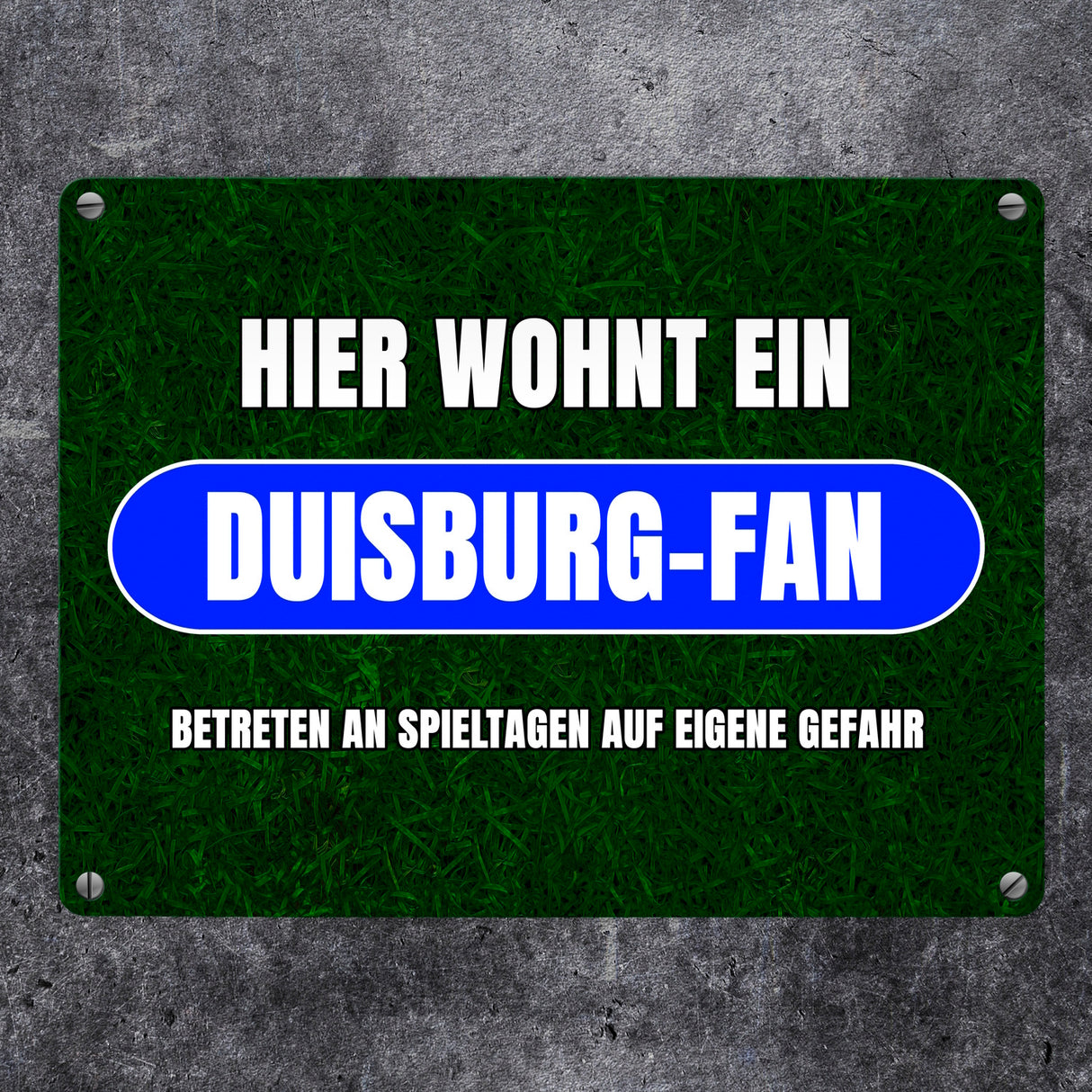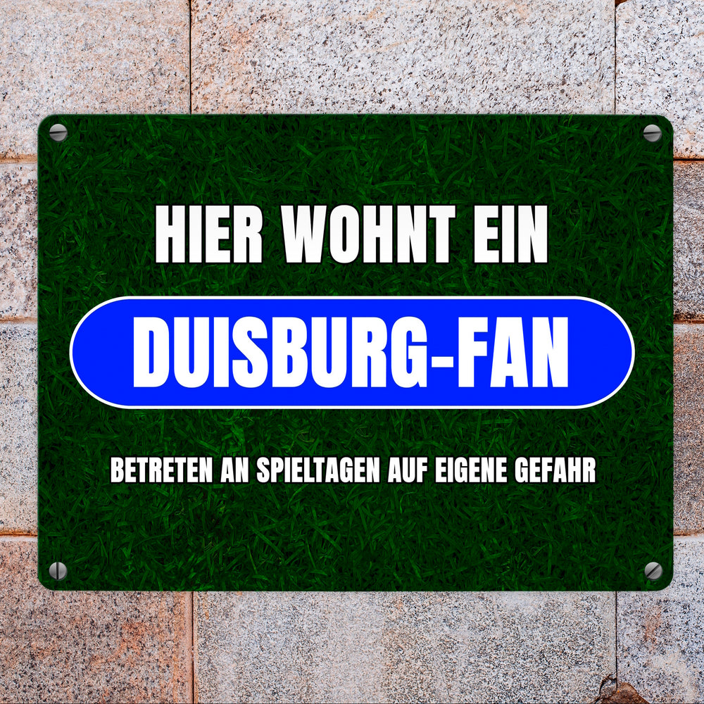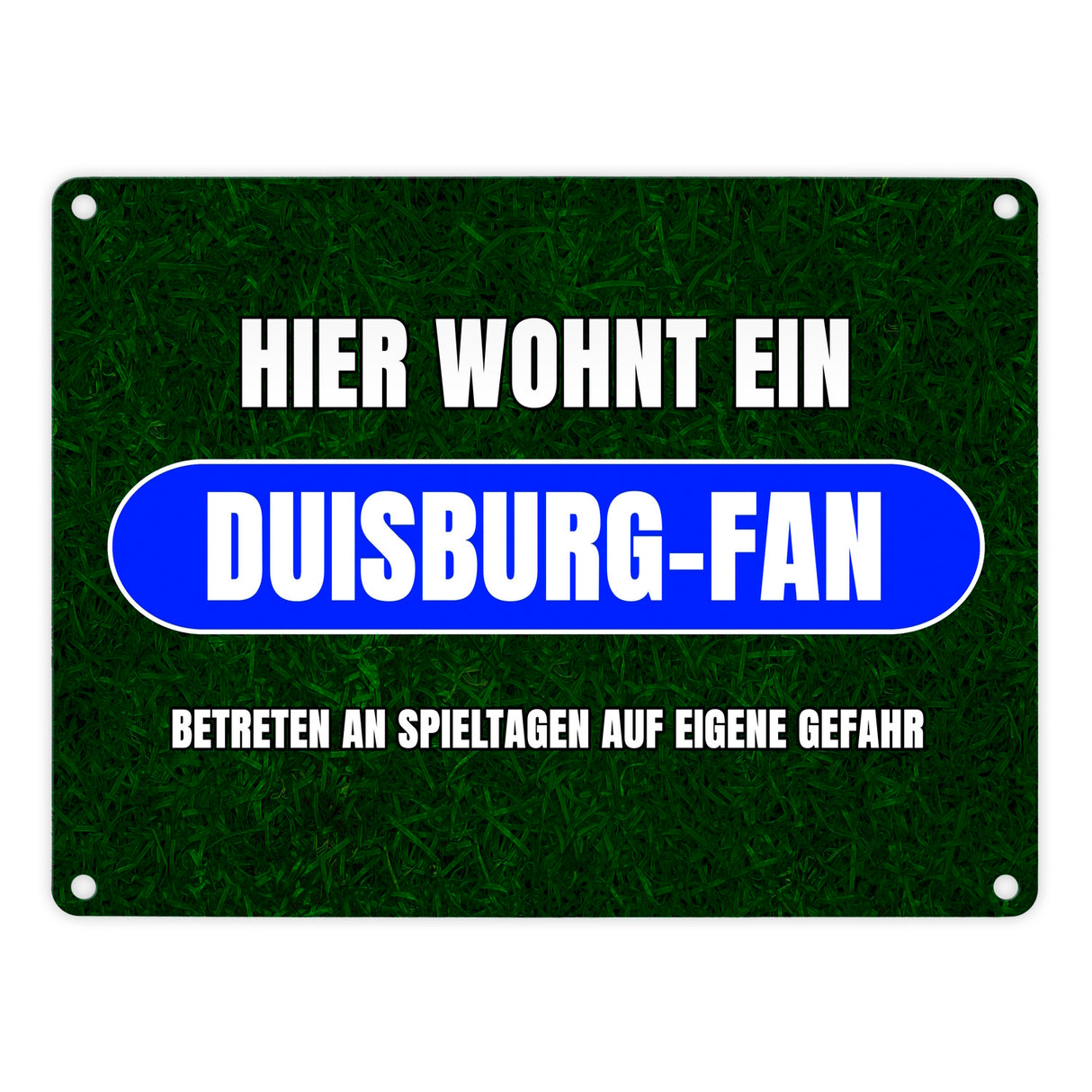 - 1x Hier wohnt ein Duisburg-Fan Metallschild in 15x20 cm mit Rasenmotiv in der gewählten Größe