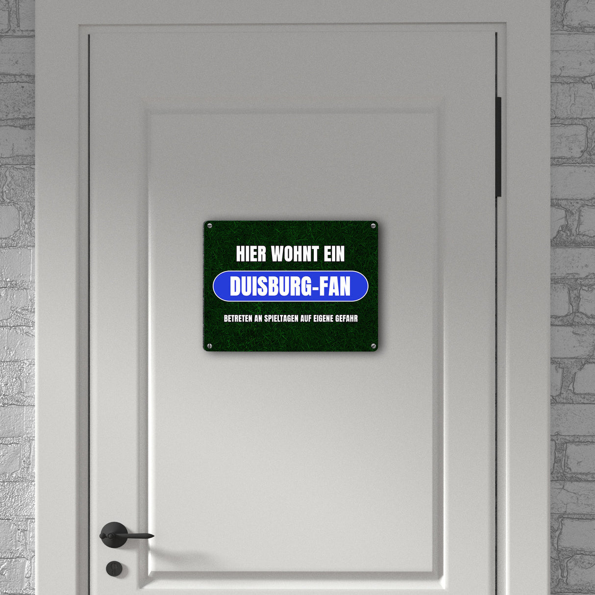 Hier wohnt ein Duisburg-Fan Metallschild in 15x20 cm mit Rasenmotiv