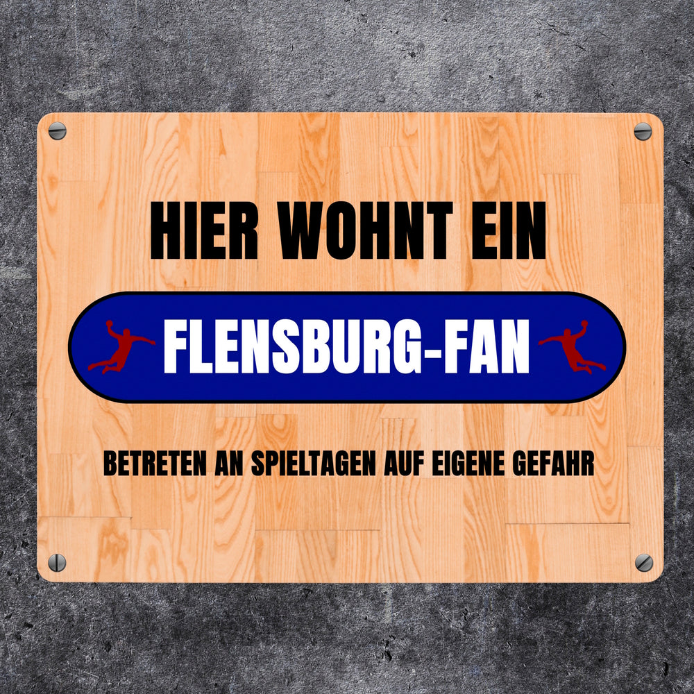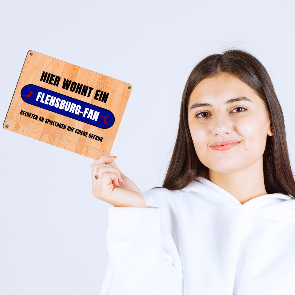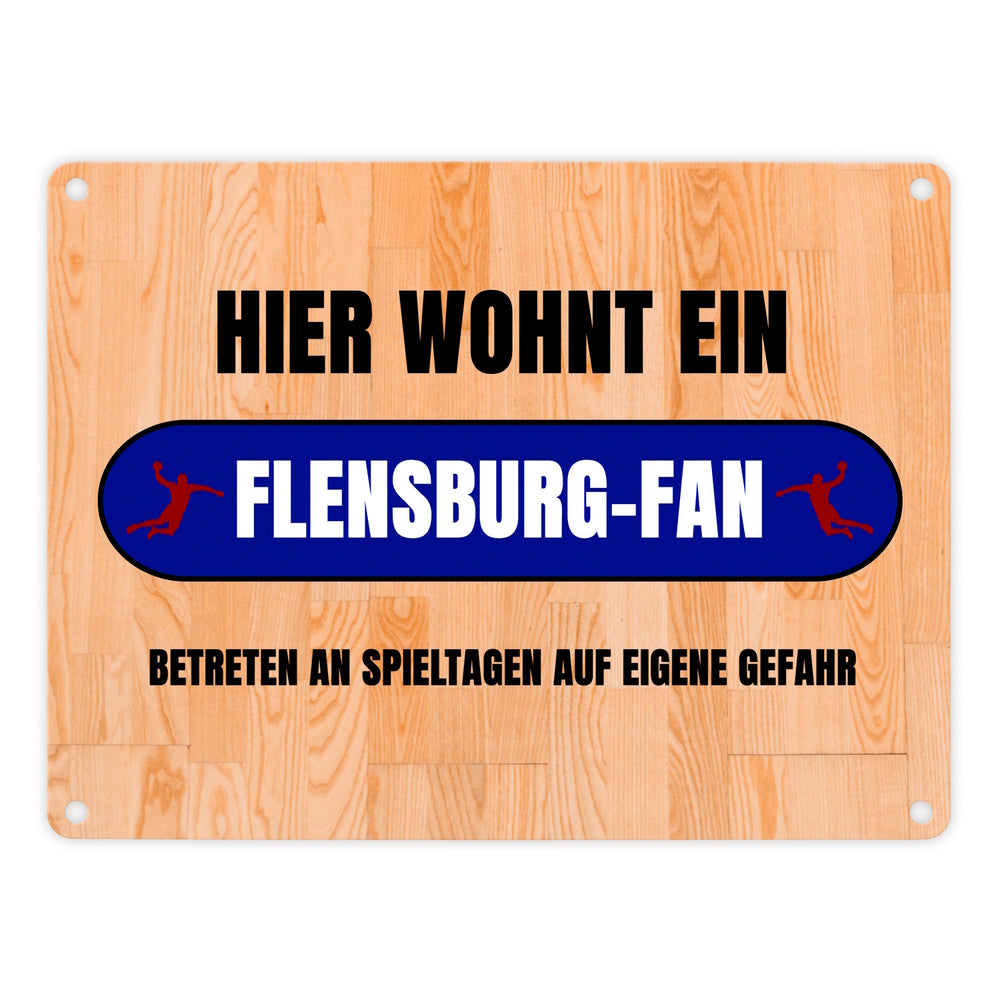 - Dein Herz schlägt für Flensburg? Dann kannst du als richtiger Flensburg-Fan nun zeigen, dann an Spieltagen für dich nur eins zählt: Der Sport! Dieses tolle Metallschild ist aussagekräftig und hat ein hellbraunes Holzmotiv, welches an einen Turnhallenboden erinnert.