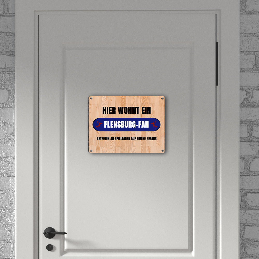 - 1x Hier wohnt ein Flensburg-Fan Metallschild in 15x20 cm mit Turnhallenboden Motiv in der gewählten Größe