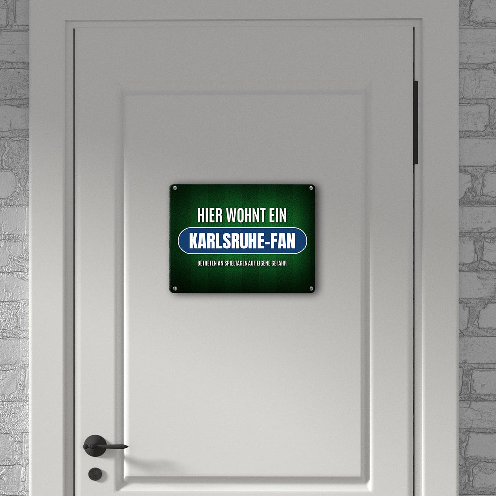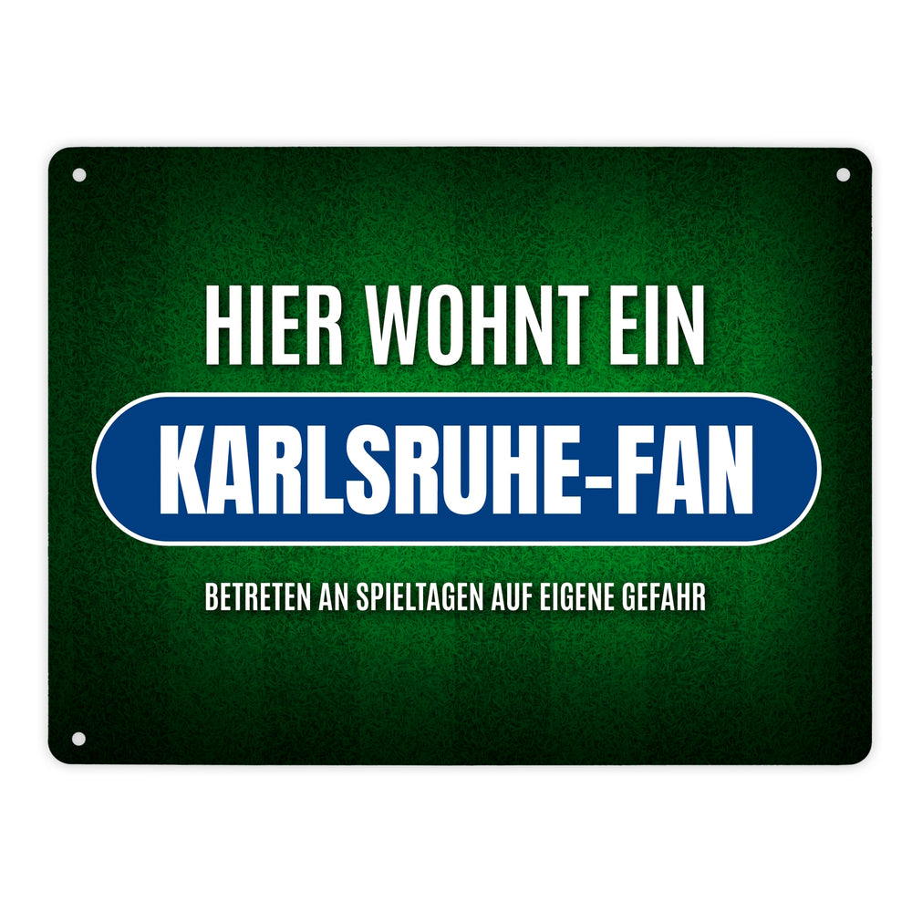 • 1x Hier wohnt ein Karlsruhe-Fan Metallschild mit Rasen Motiv in der gewählten Größe