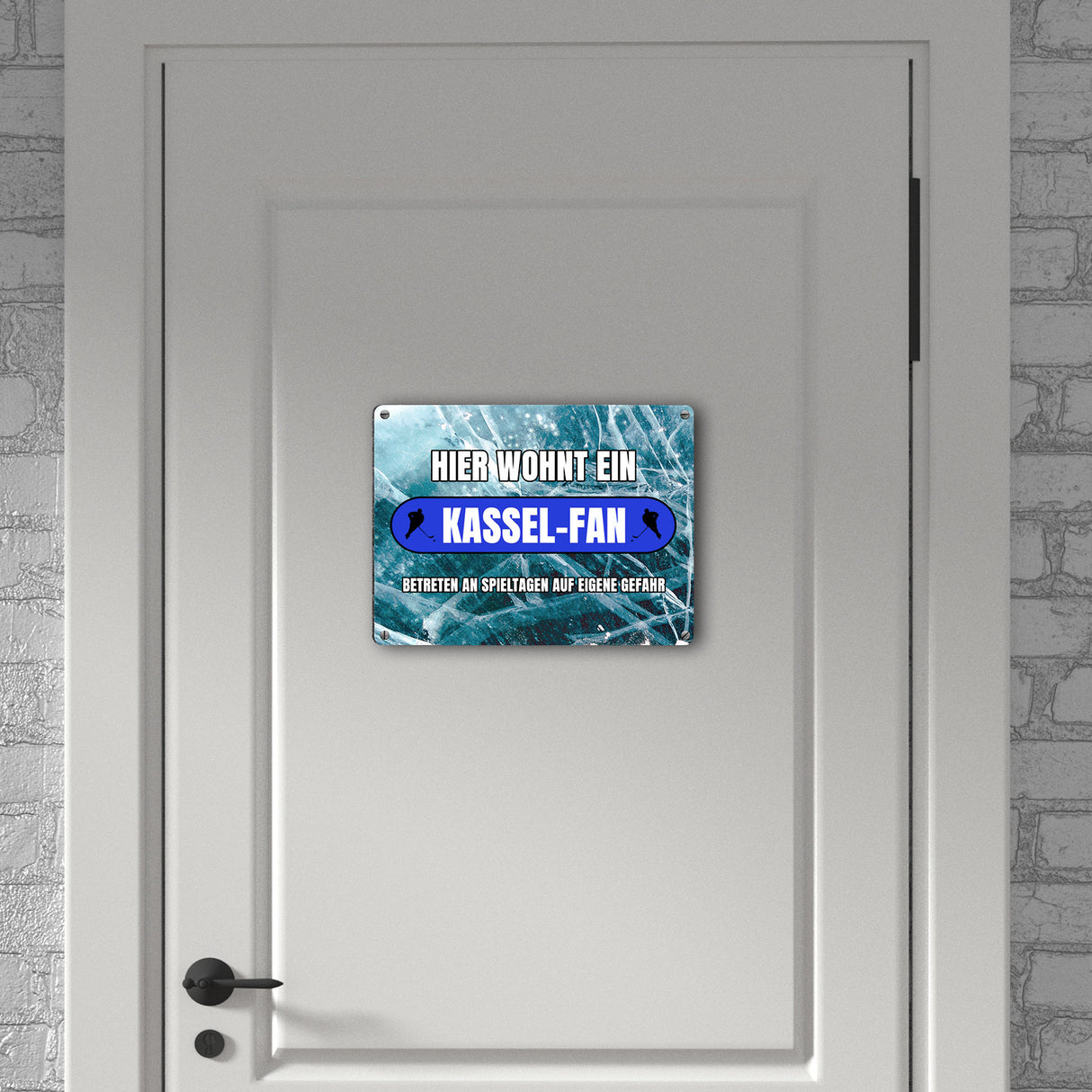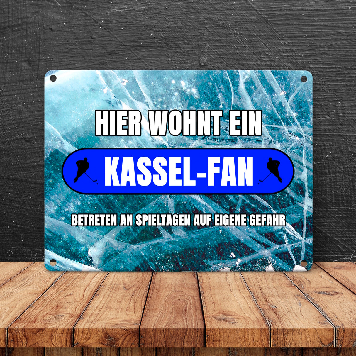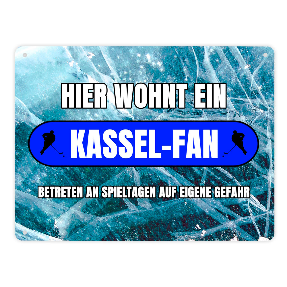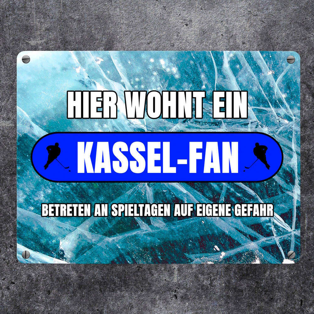 - 1x Hier wohnt ein Kassel-Fan Metallschild in 15x20 cm mit Eishallen Boden-Motiv in der gewählten Größe