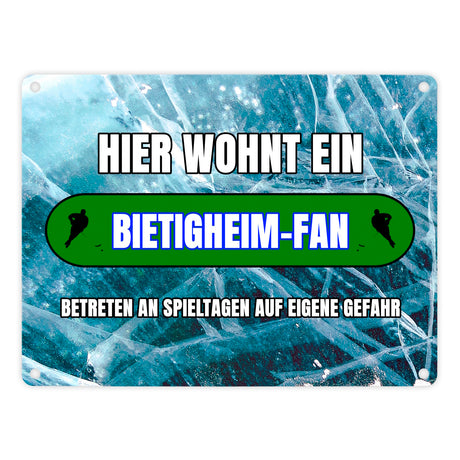 Hier wohnt ein Bietigheim-Fan Metallschild in 15x20 cm mit Eishallen Boden-Motiv