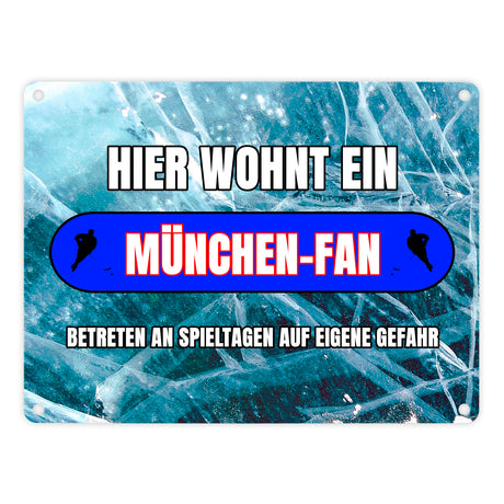 Hier wohnt ein München-Fan Metallschild in 15x20 cm mit Eishallen Boden-Motiv