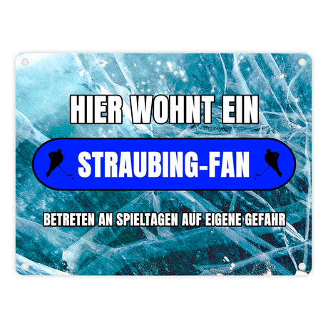 Hier wohnt ein Straubing-Fan Metallschild in 15x20 cm mit Eishallen Boden-Motiv