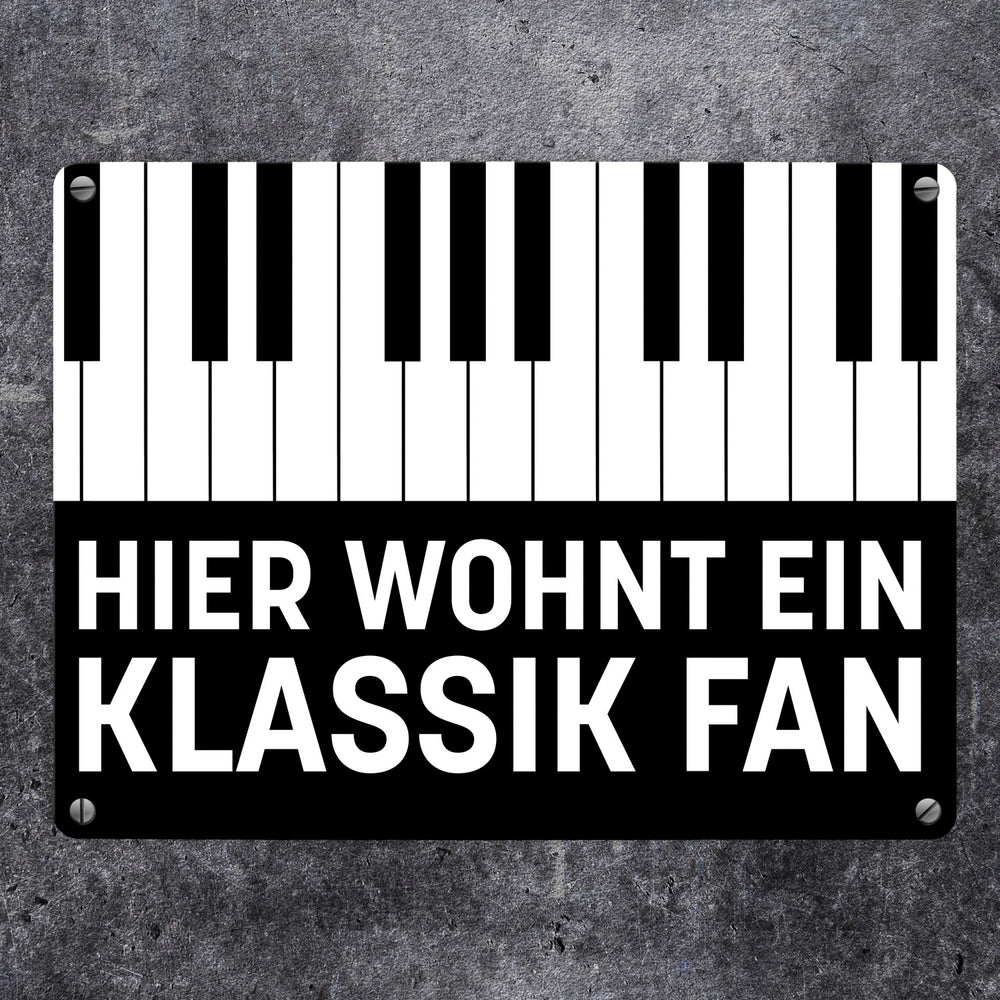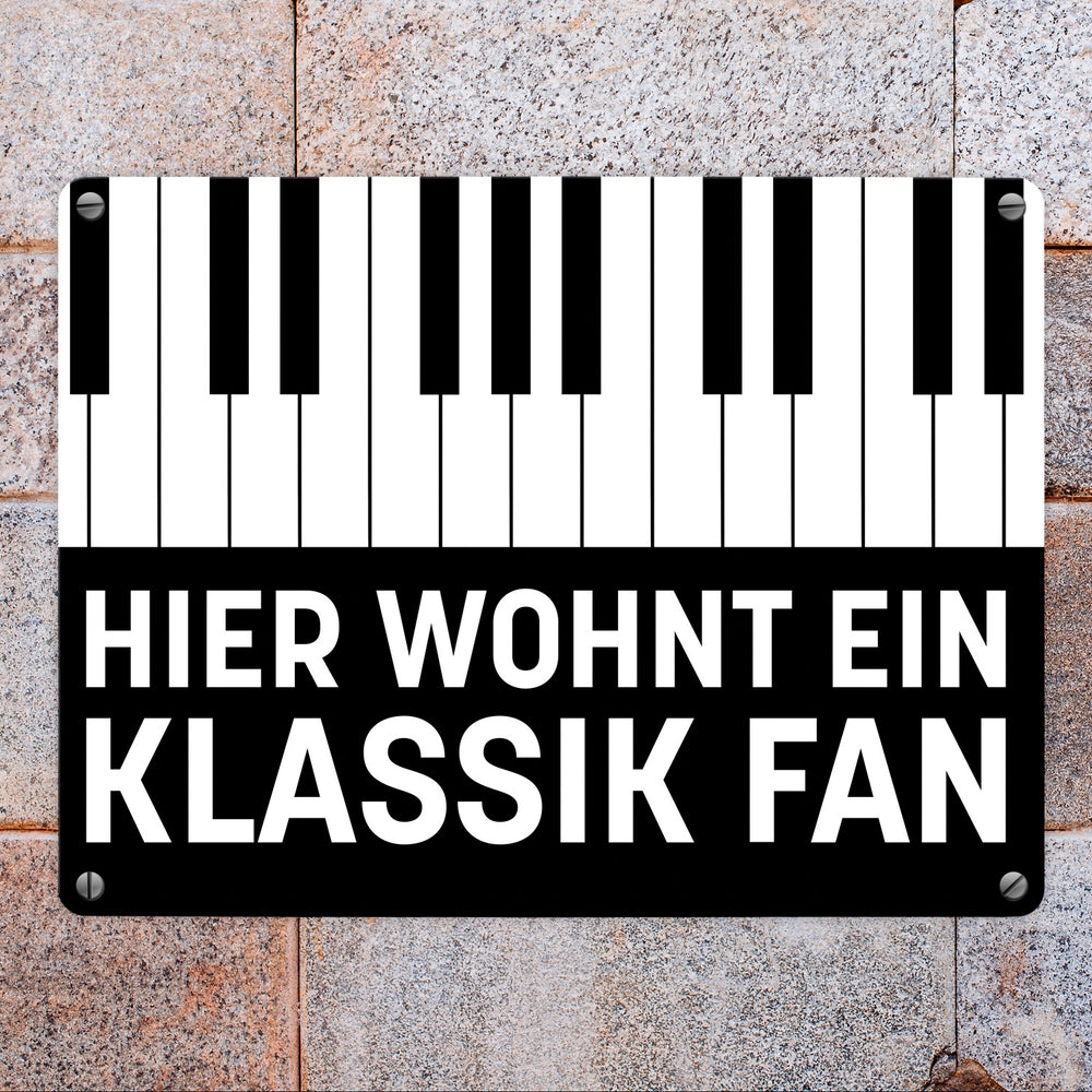 - 1x Hier wohnt ein Klassik Fan Metallschild mit Klavier Design in der gewählten Größe