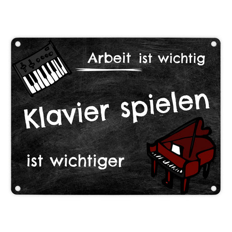 Klavier spielen Metallschild - Arbeit ist wichtig Klavierspielen ist wichtiger