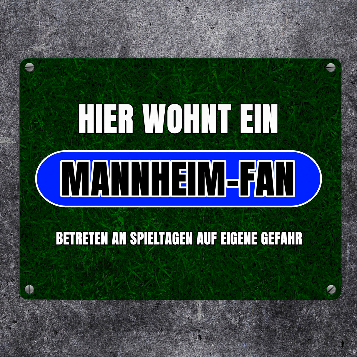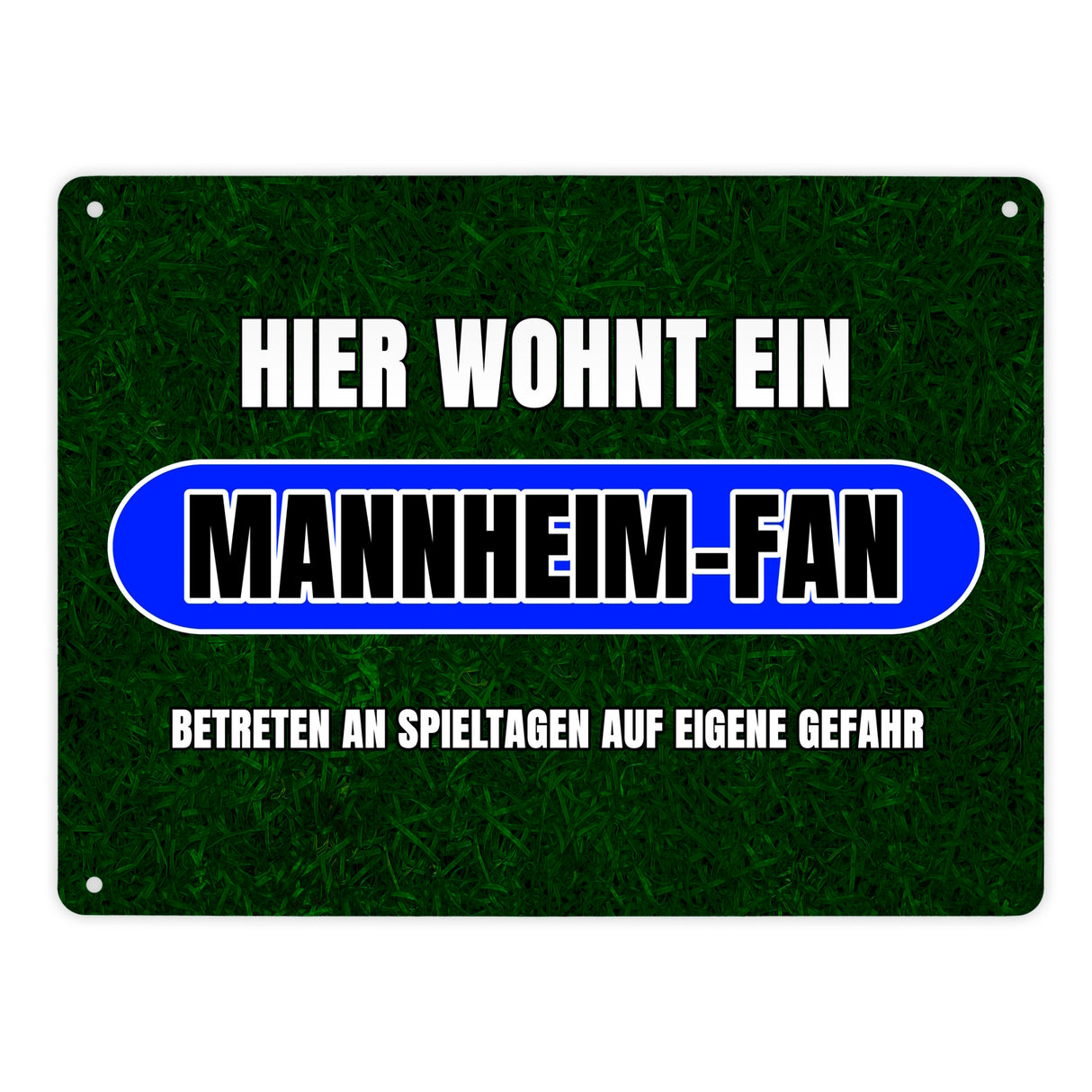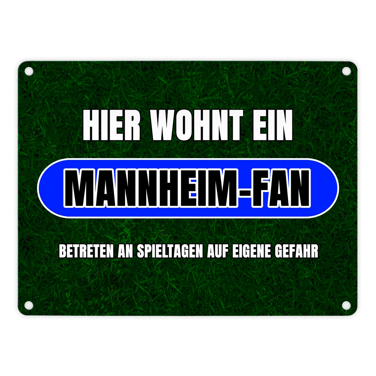 - Dein Herz schlägt für Mannheim? Dann kannst du als richtiger Mannheim-Fan nun zeigen, dass an Spieltagen für dich nur eins zählt: Der Sport! Dieses tolle Metallschild ist aussagekräftig und hat ein dunkelgrünes Rasenmotiv.