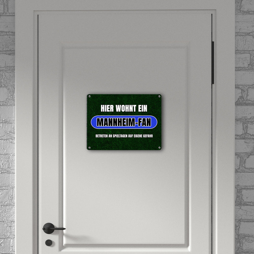 - 1x Hier wohnt ein Mannheim-Fan Metallschild in 15x20 cm mit Rasenmotiv in der gewählten Größe