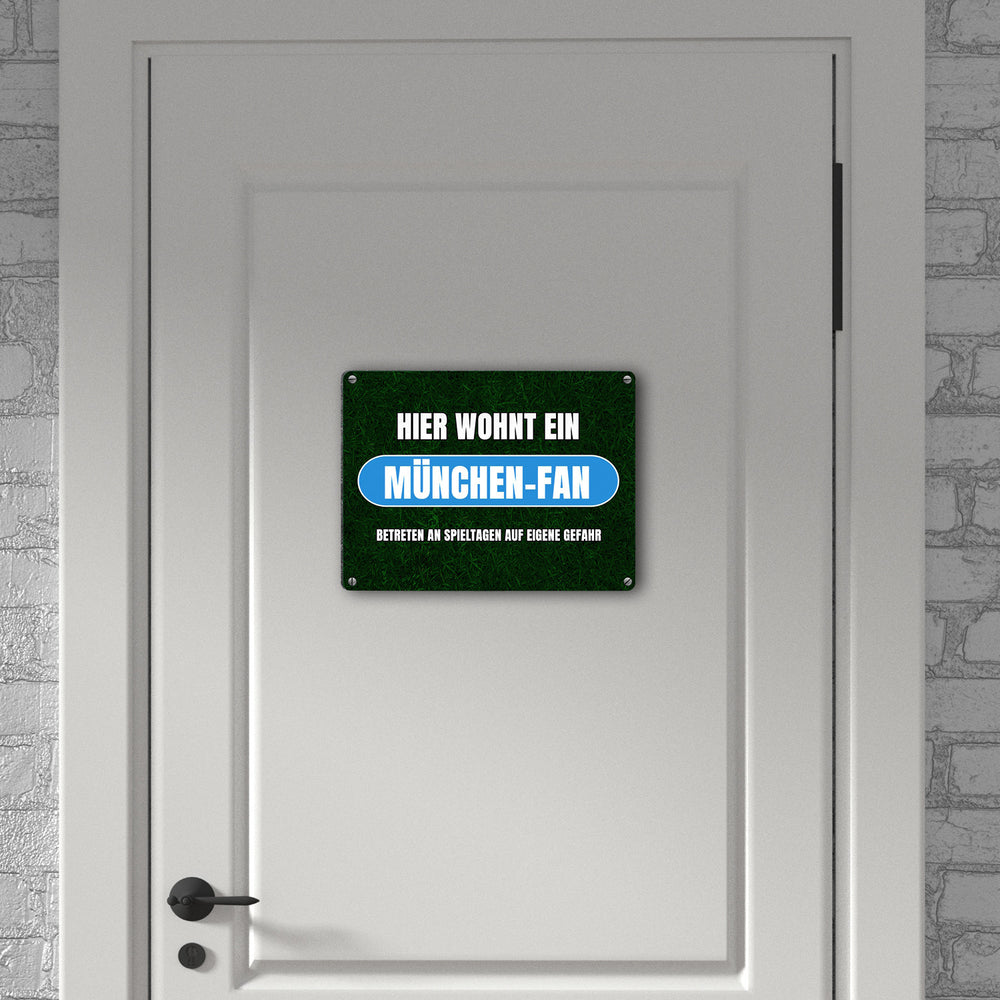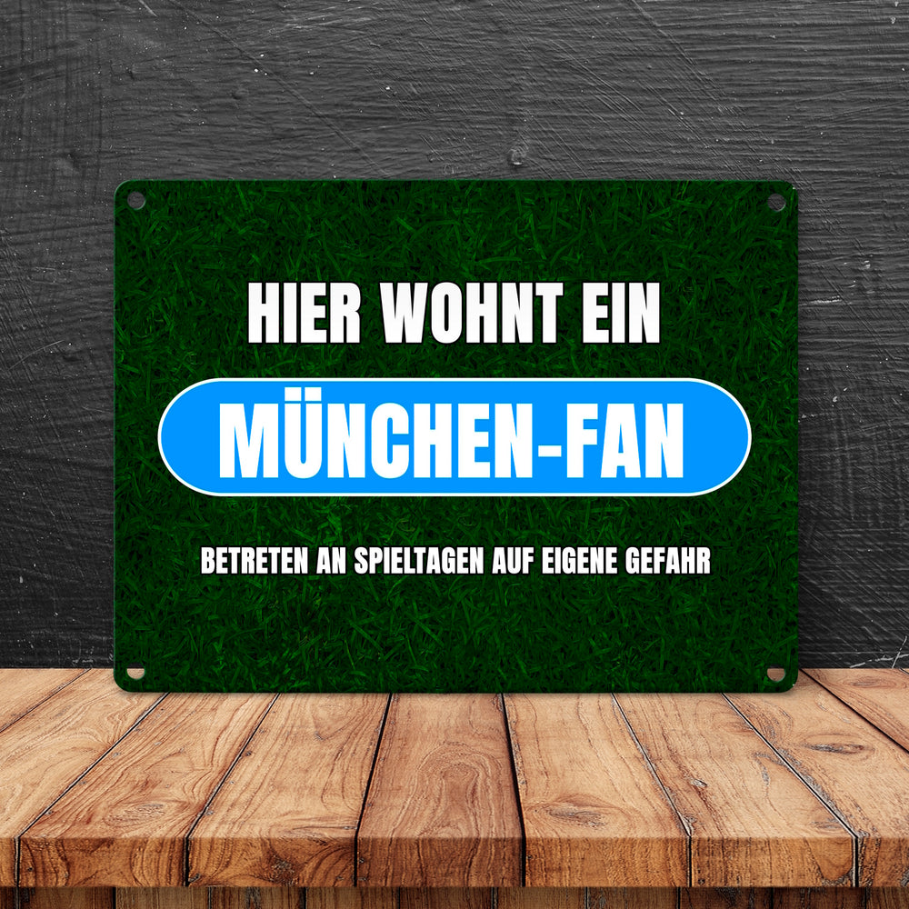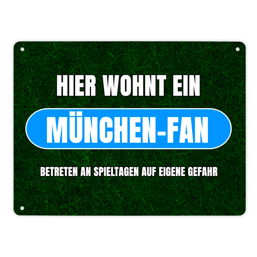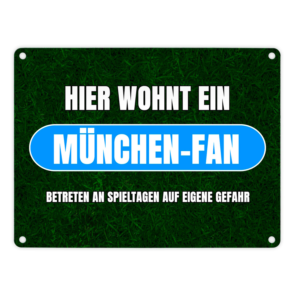 - 1x Hier wohnt ein München-Fan Metallschild in 15x20 cm mit Rasenmotiv in der gewählten Größe