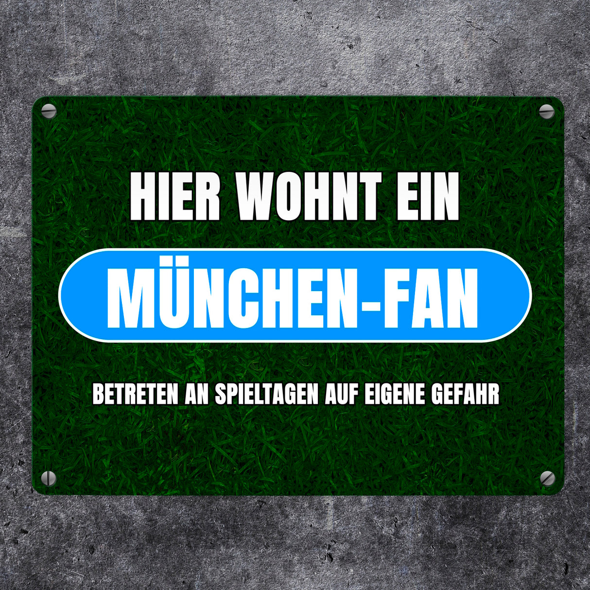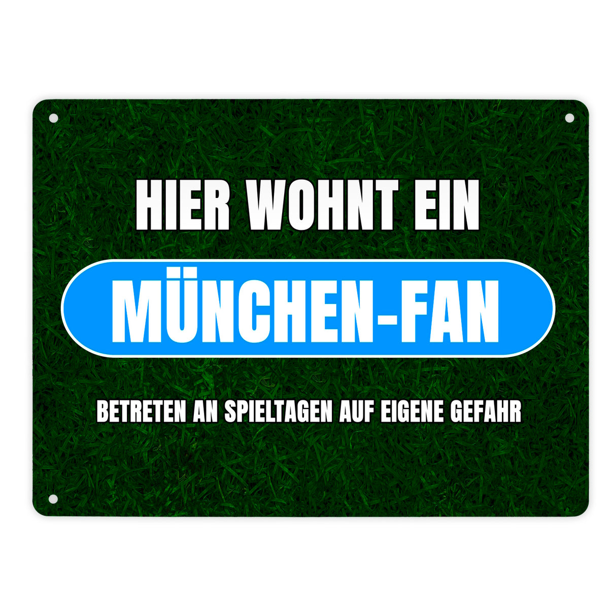 - Dein Herz schlägt für München? Dann kannst du als richtiger München-Fan nun zeigen, dass an Spieltagen für dich nur eins zählt: Der Sport! Dieses tolle Metallschild ist aussagekräftig und hat ein dunkelgrünes Rasenmotiv.