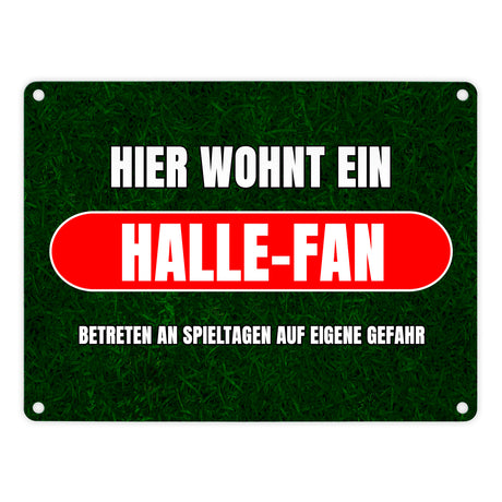 Hier wohnt ein Halle-Fan Metallschild in 15x20 cm mit Rasenmotiv