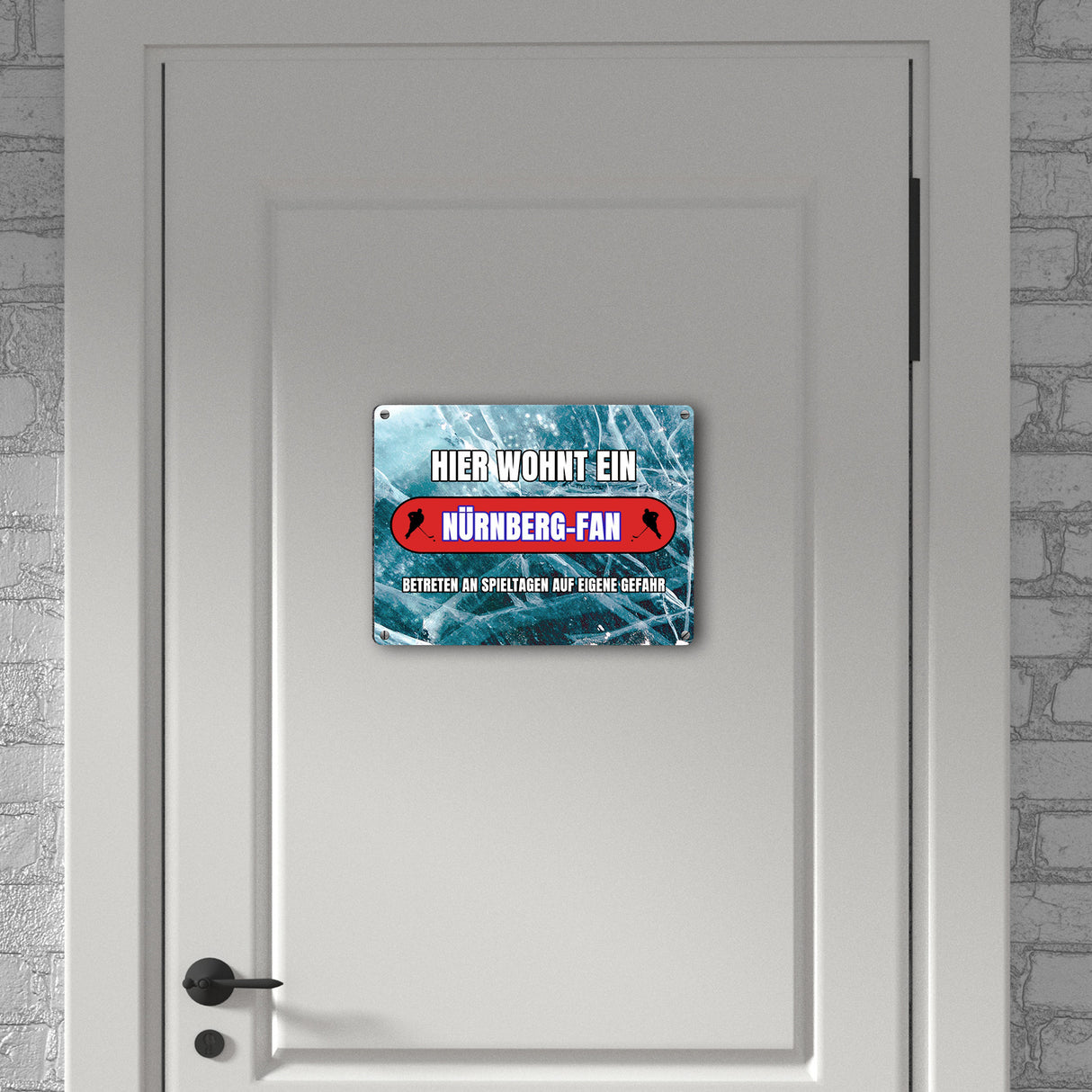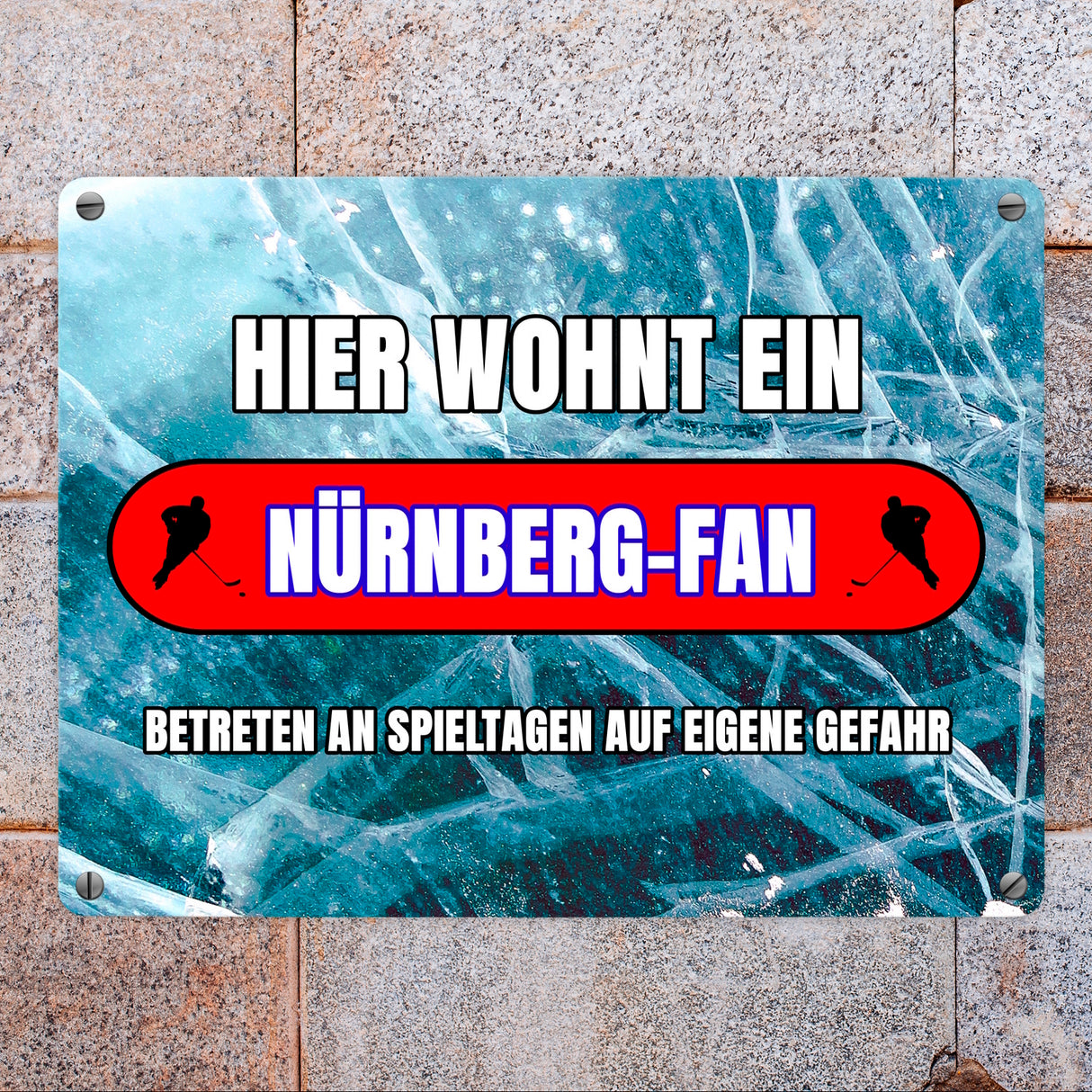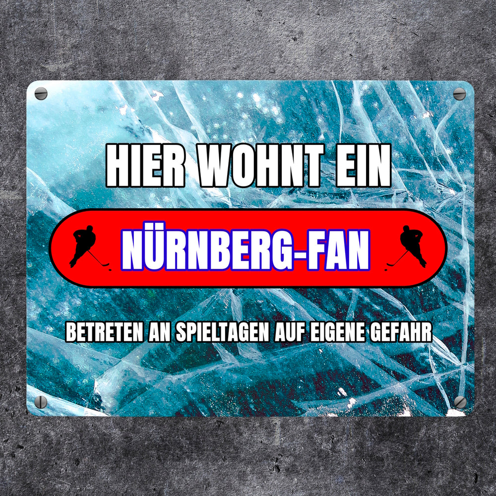 - 1x Hier wohnt ein Nürnberg-Fan Metallschild in 15x20 cm mit Eishallen Boden-Motiv in der gewählten Größe