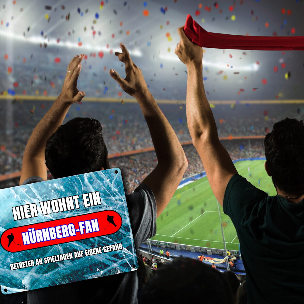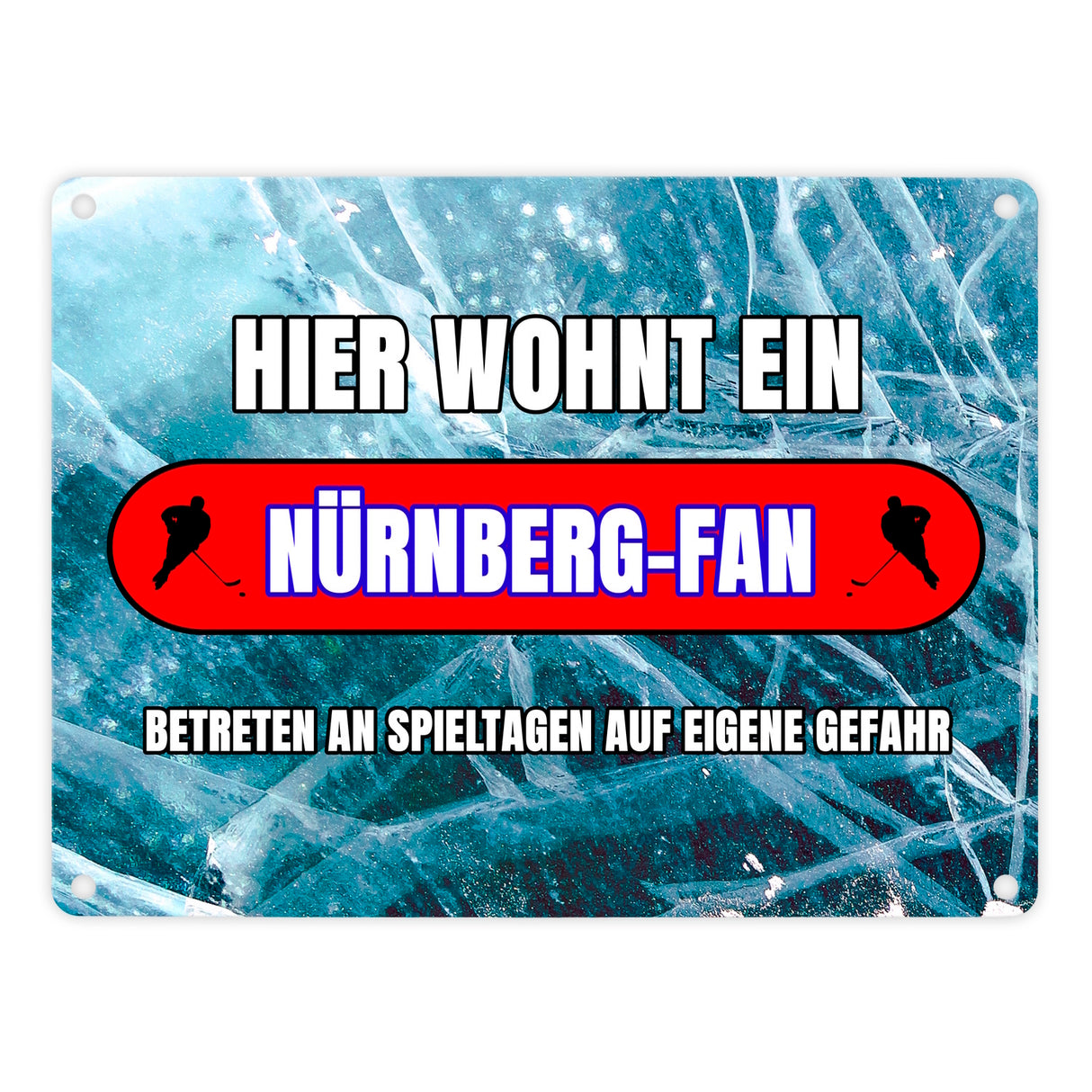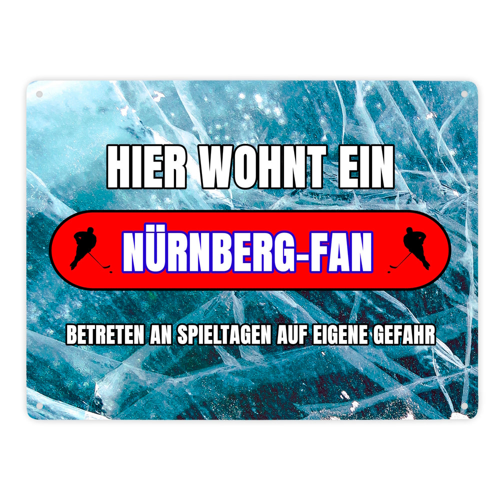 - 1x Hier wohnt ein Nürnberg-Fan Metallschild in 15x20 cm mit Eishallen Boden-Motiv in der gewählten Größe