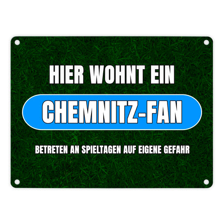 Hier wohnt ein Chemnitz-Fan Metallschild in 15x20 cm mit Rasenmotiv