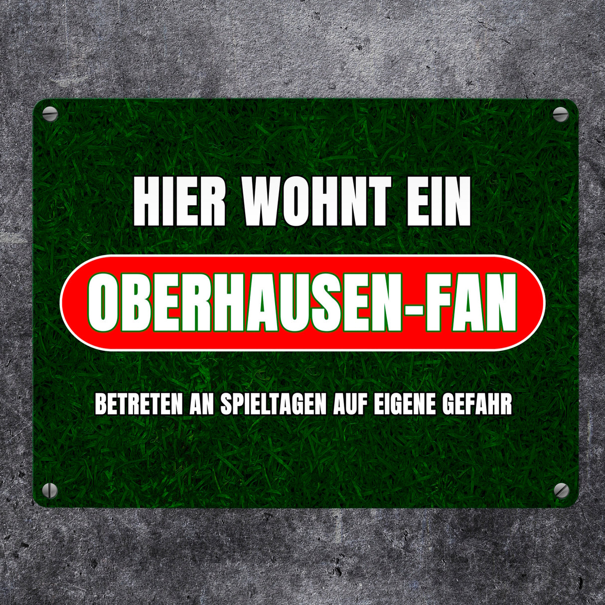 - 1x Hier wohnt ein Oberhausen-Fan Metallschild in 15x20 cm mit Rasenmotiv in der gewählten Größe
