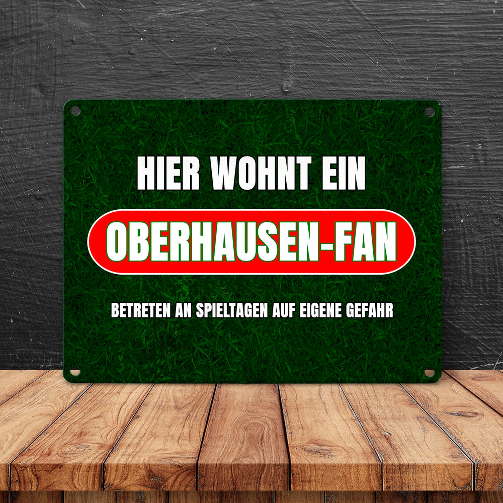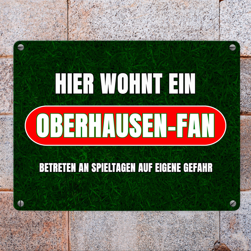 Hier wohnt ein Oberhausen-Fan Metallschild in 15x20 cm mit Rasenmotiv