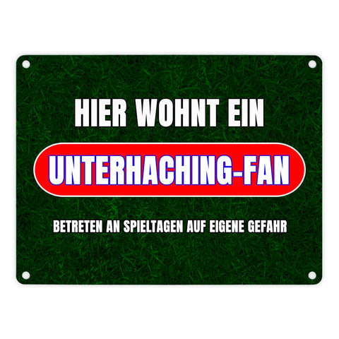 Hier wohnt ein Unterhaching-Fan Metallschild in 15x20 cm mit Rasenmotiv