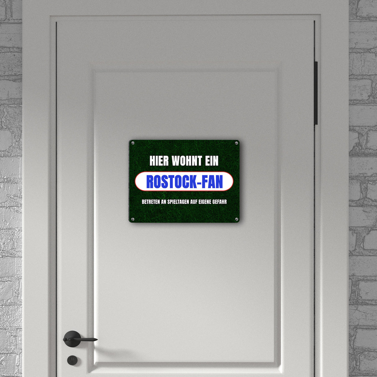 - 1x Hier wohnt ein Rostock-Fan Metallschild in 15x20 cm mit Rasenmotiv in der gewählten Größe