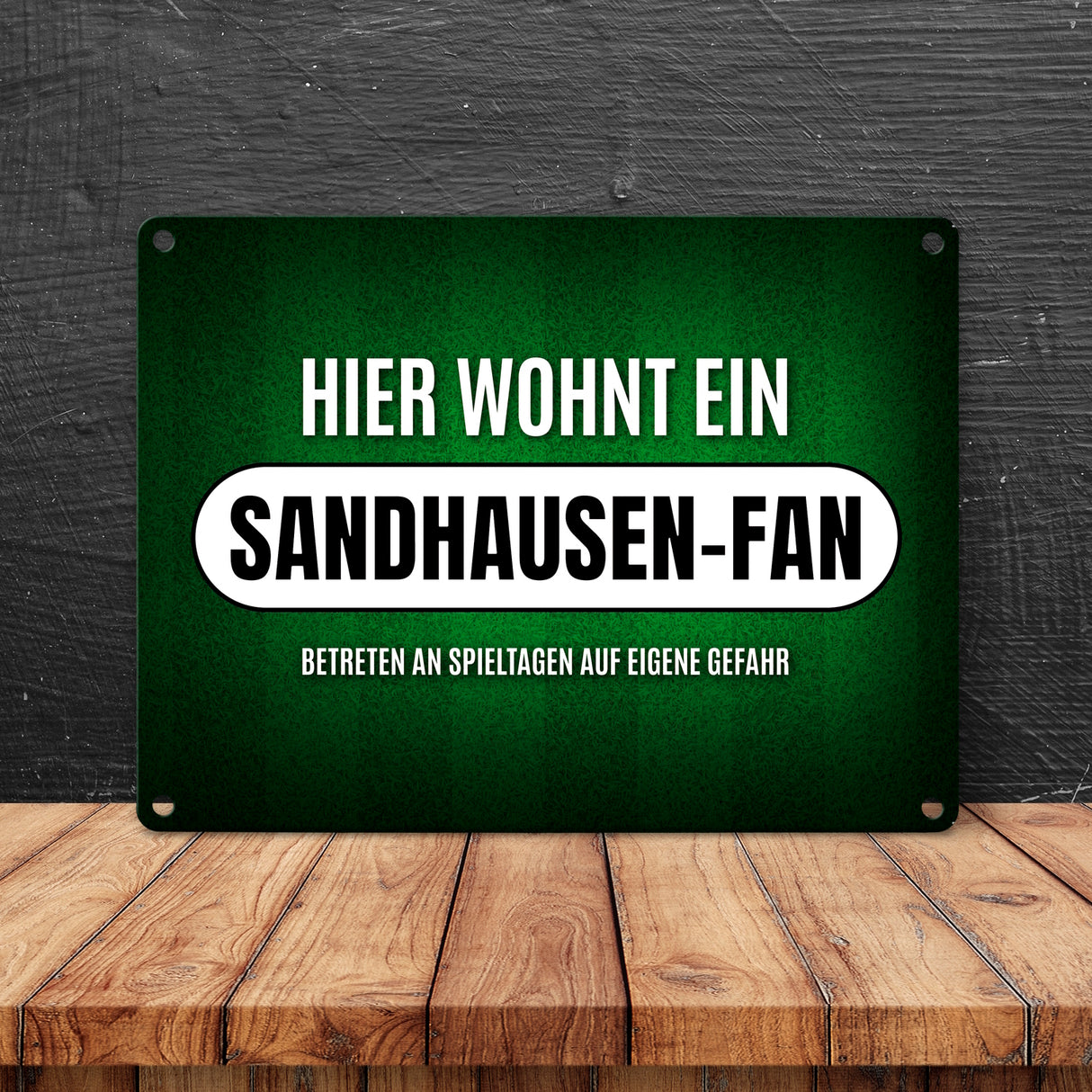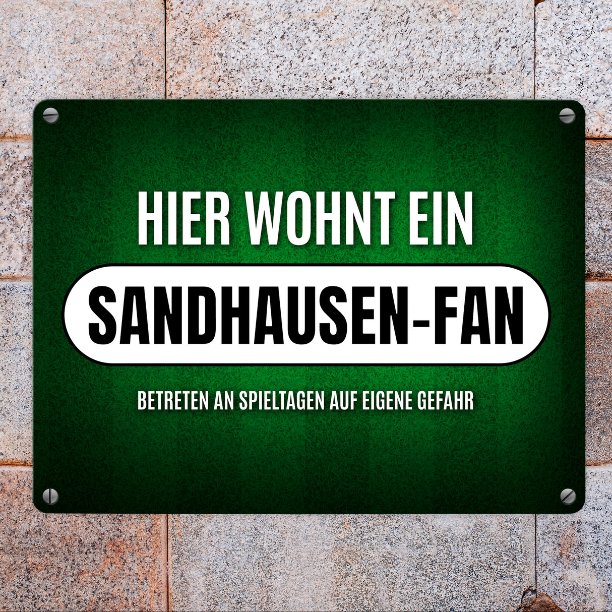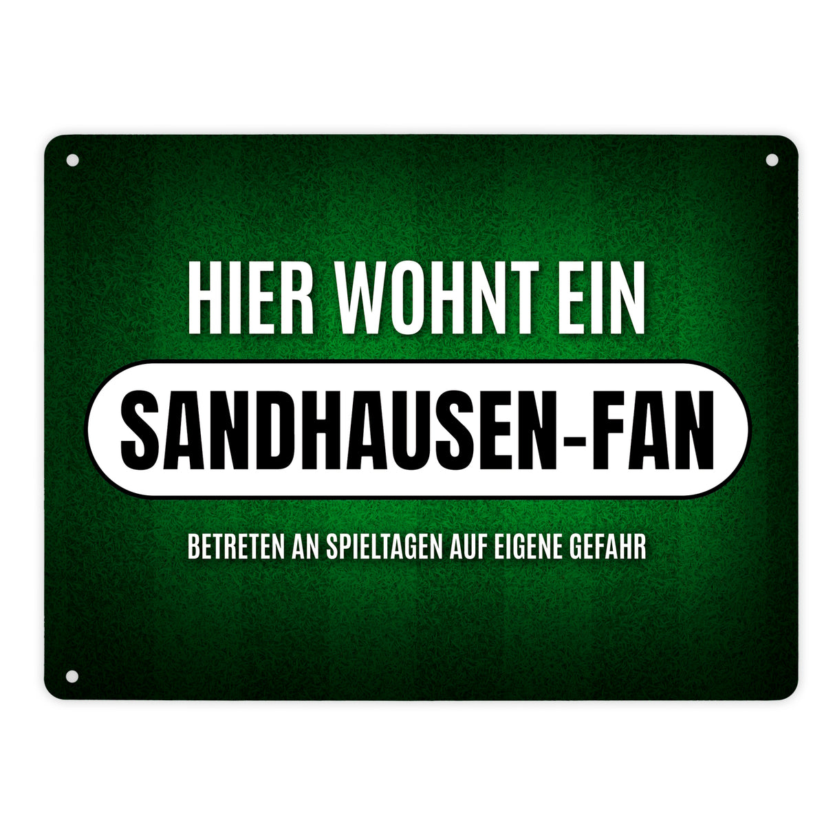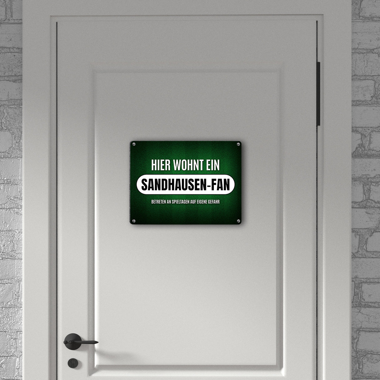 • 1x Hier wohnt ein Sandhausen-Fan Metallschild mit Rasen Motiv in der gewählten Größe