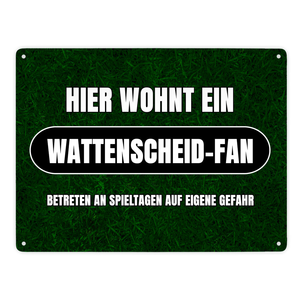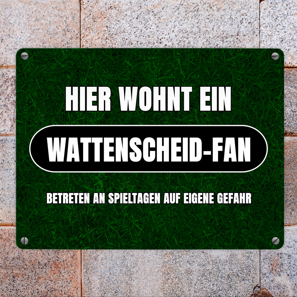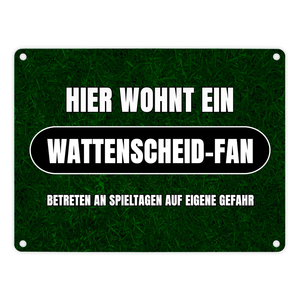 Hier wohnt ein Wattenscheid-Fan Metallschild in 15x20 cm mit Rasenmotiv