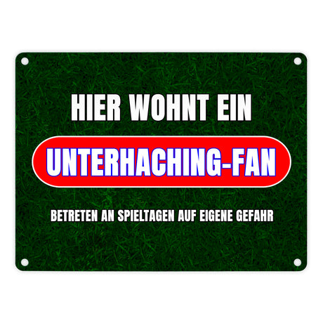 Hier wohnt ein Unterhaching-Fan Metallschild in 15x20 cm mit Rasenmotiv