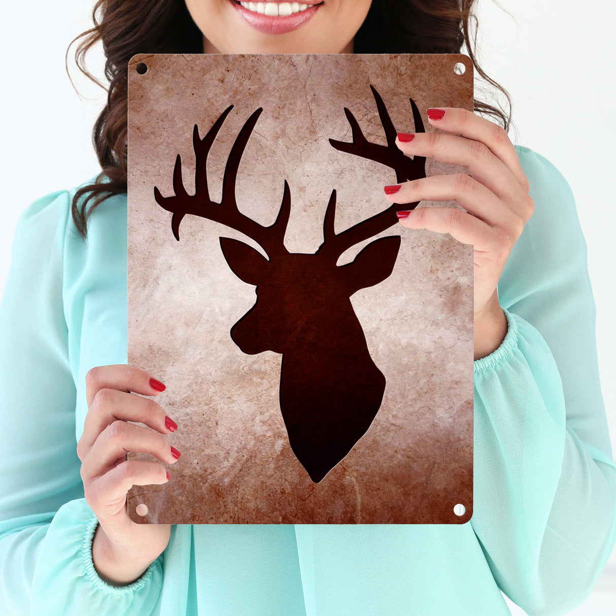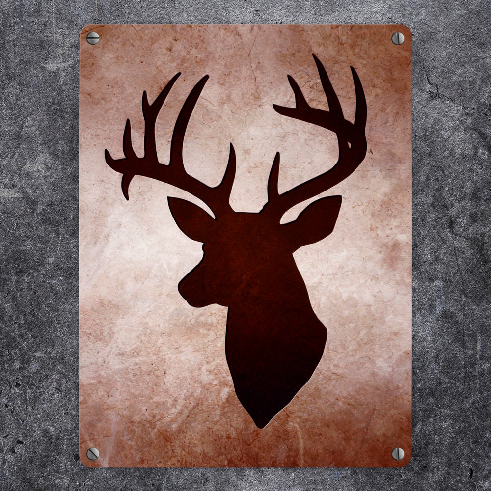 - 1x Hirschkopf Silhouette Metallschild in 15x20 cm für Jagdfans in der gewählten Größe