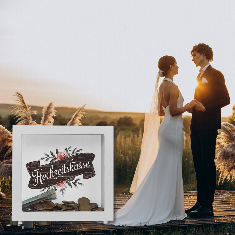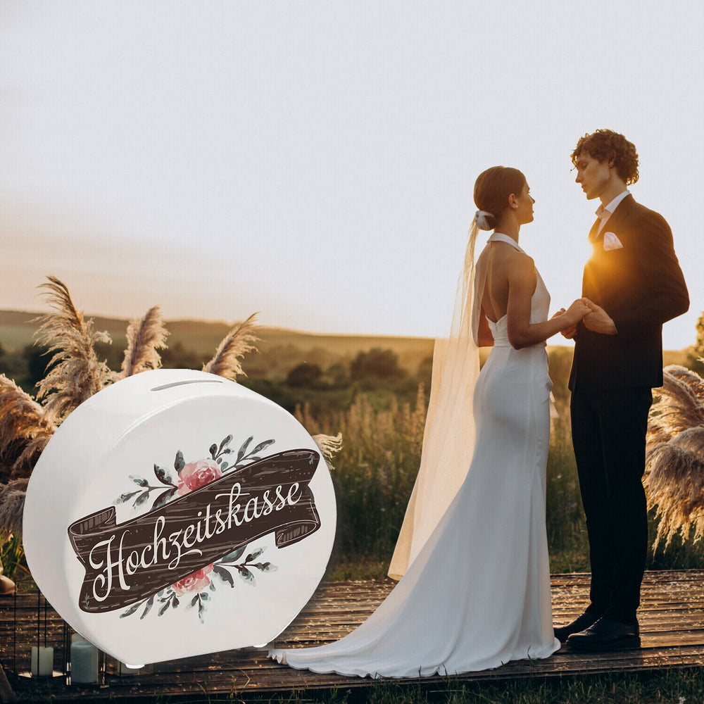 - Schenke Liebe im Vintage-Stil! Mit dieser zauberhaften Spardose wird das Sparen auf die Hochzeit ein Vergnügen. Hol dir die Hochzeitskasse und lass den Aquarellcharme wirken. Perfekt als Geschenk für verlobte Freunde oder als dekorativer Hingucker für den zukünftigen Brautpaartisch. Hier wird jeder Cent mit einem Lächeln verwahrt!
