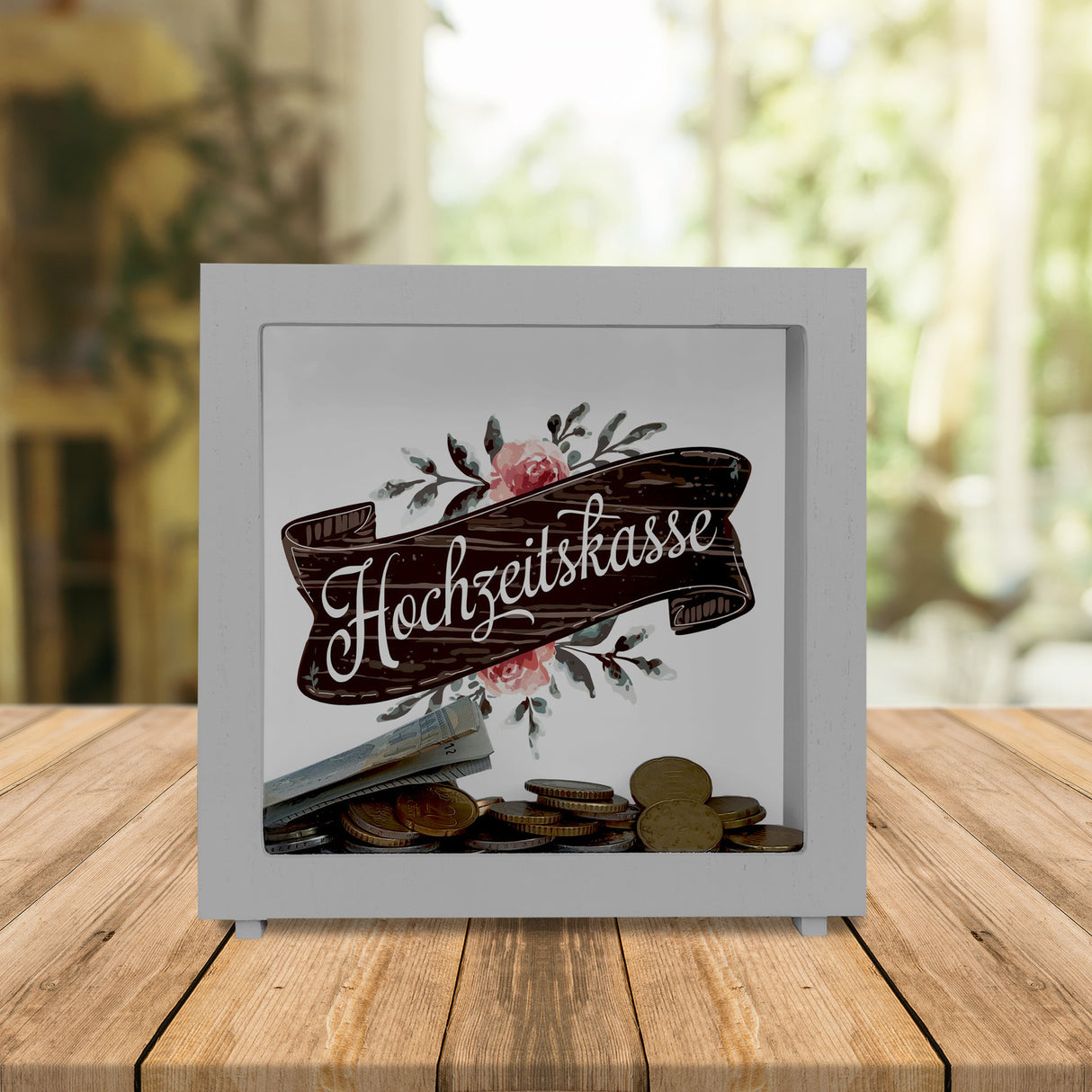 - Stell dir vor, du könntest den süßen Duft von Liebe in einer Spardose einfangen! Unsere Hochzeitskasse im Aquarell Vintage-Stil vereint den Charm eines alten Scheunentores mit blühenden Blumen und elegantem Geschreibsel. Perfekt, um alle Pennys für den großen Tag zu sammeln oder als witzige Deko für Zuhause!