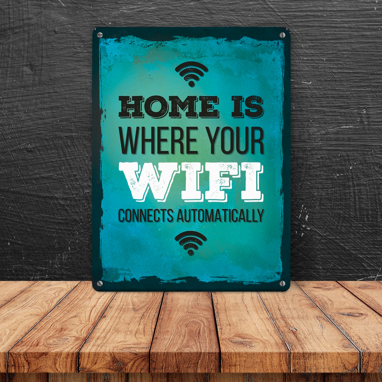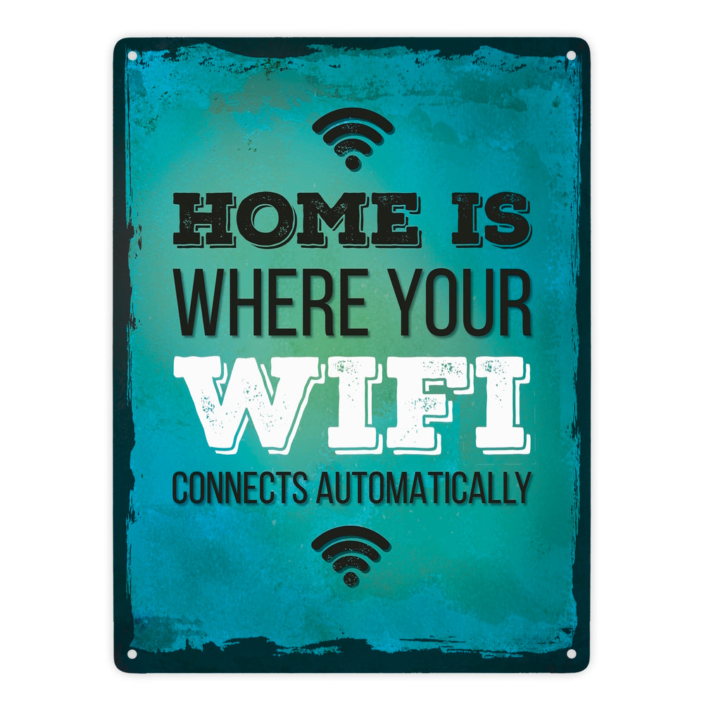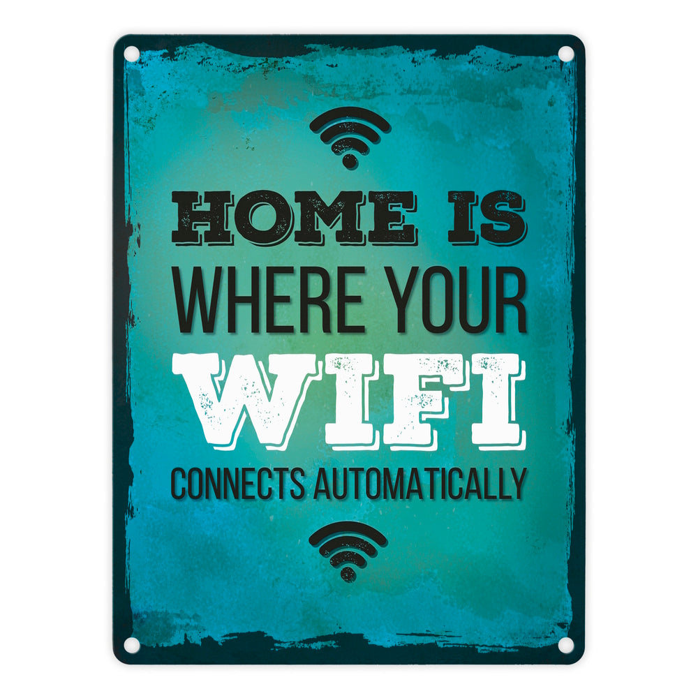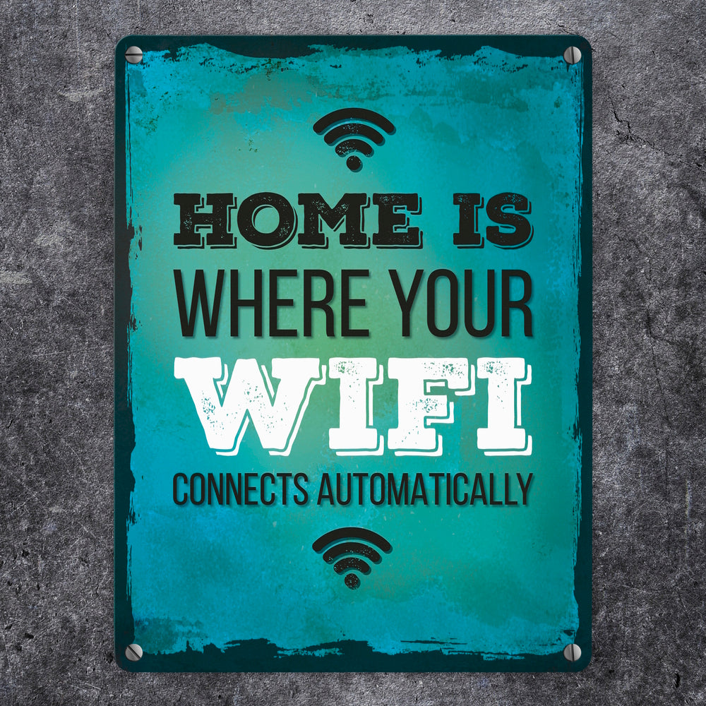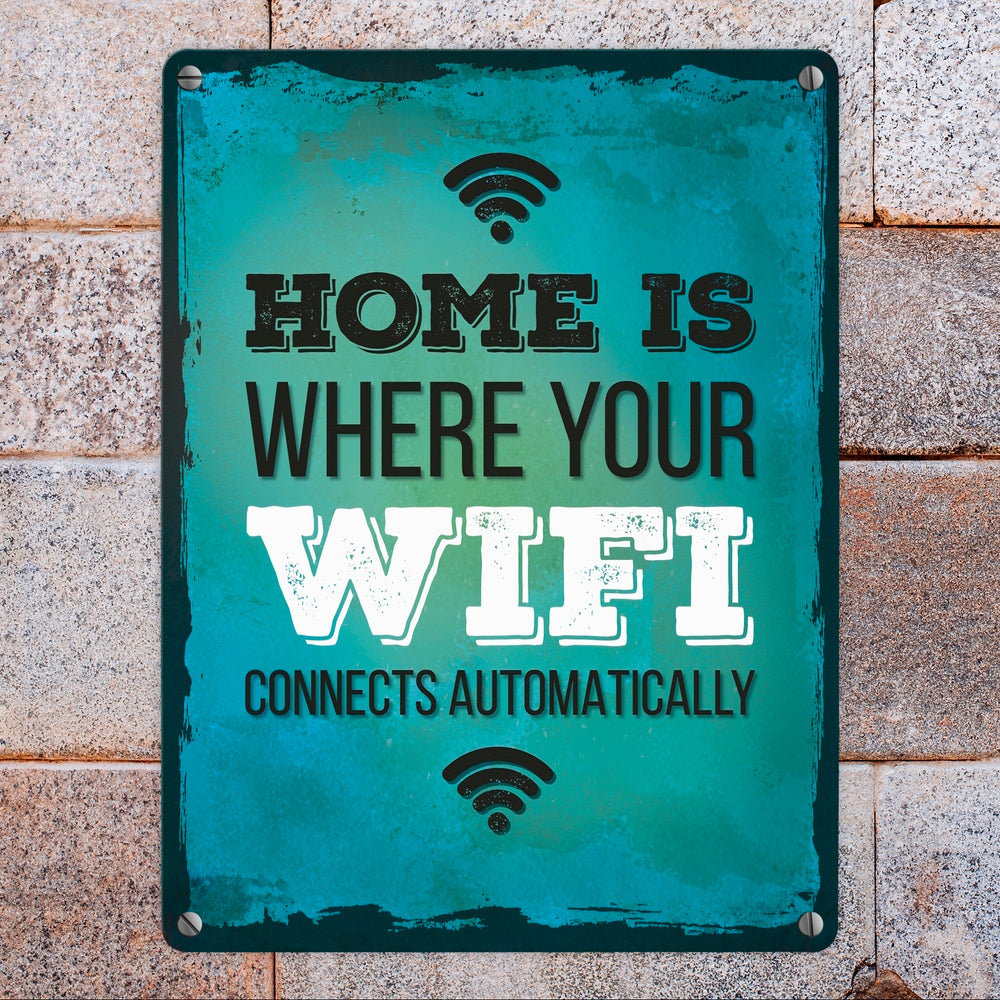 - 1x Home is where your wifi connects automatically Metallschild in der gewählten Größe