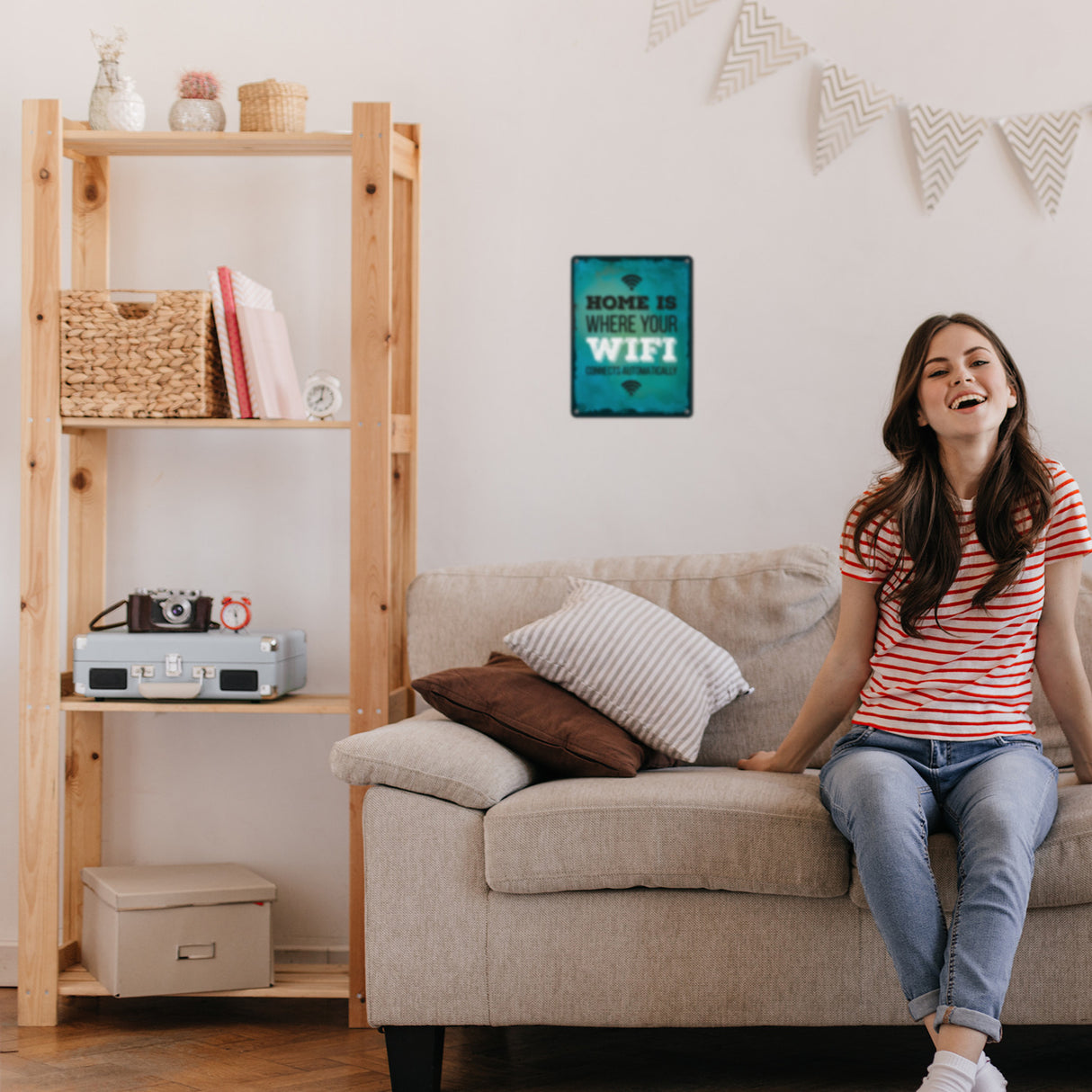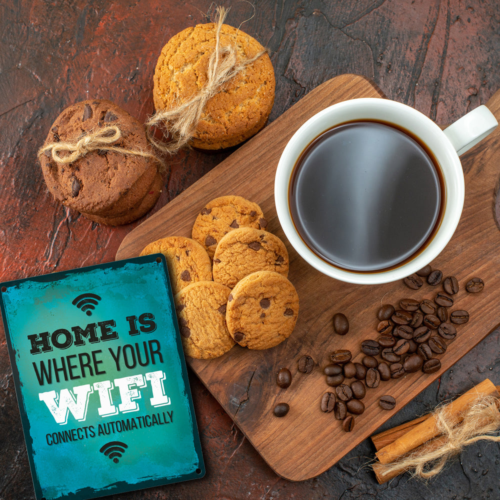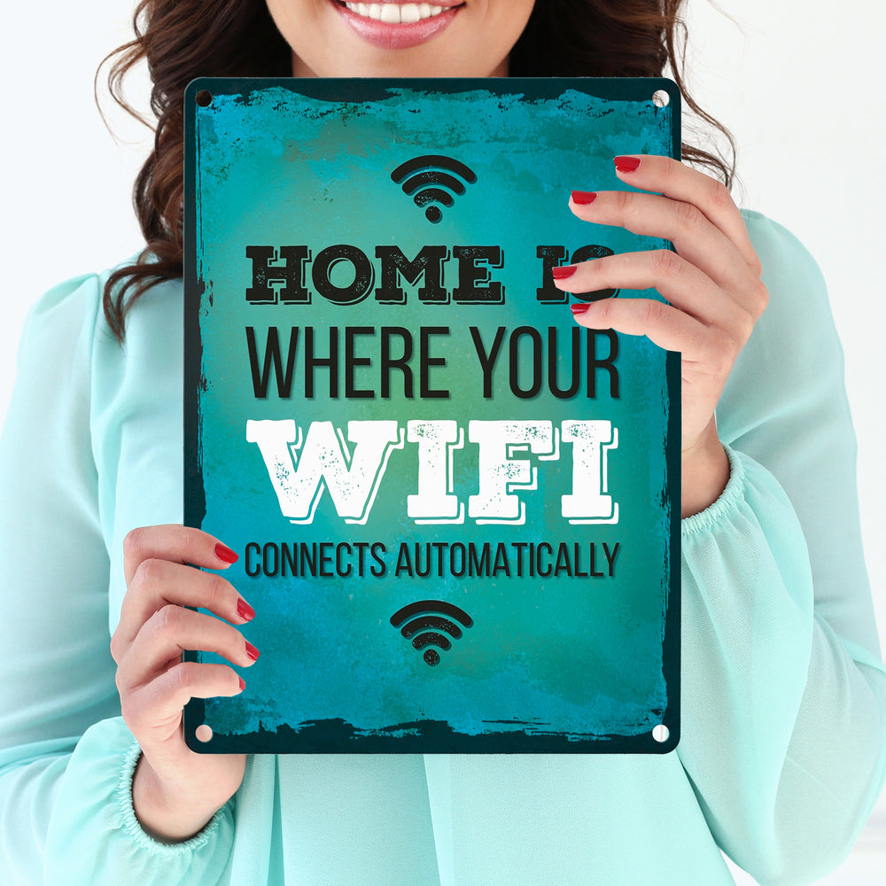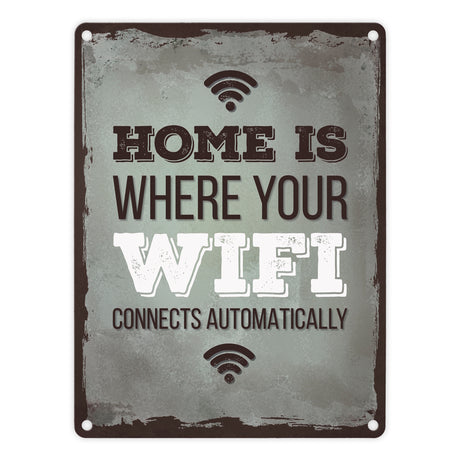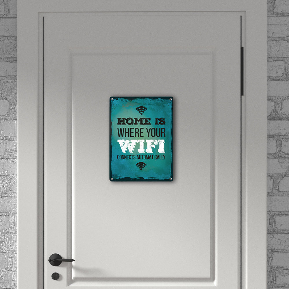 - 1x Home is where your wifi connects automatically Metallschild in der gewählten Größe