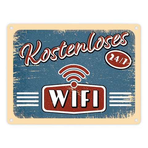 Kostenloses Wifi 24/7 Metallschild im trendigen Retrolook