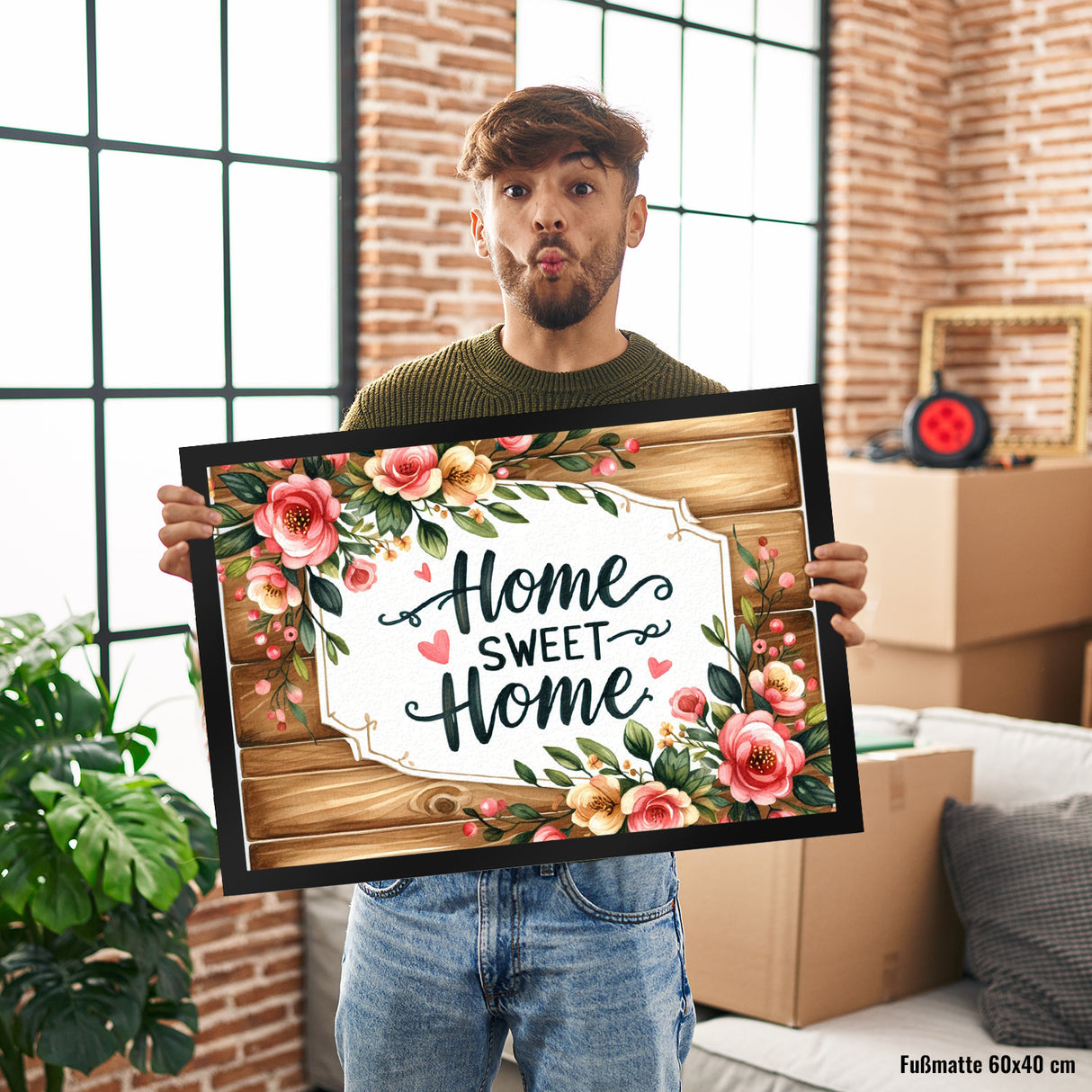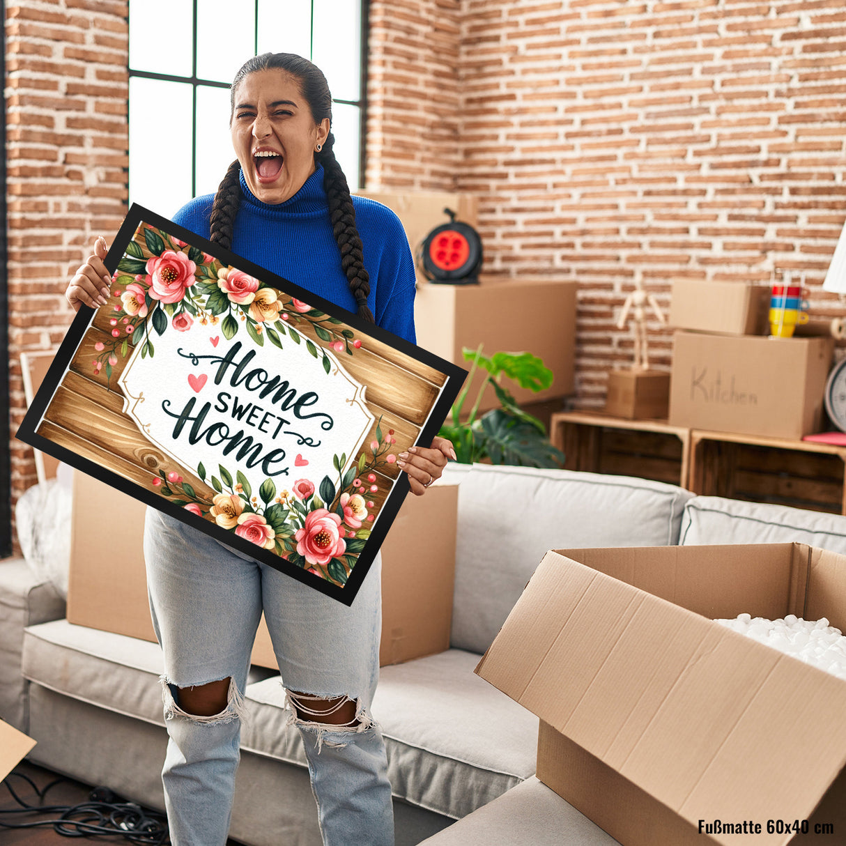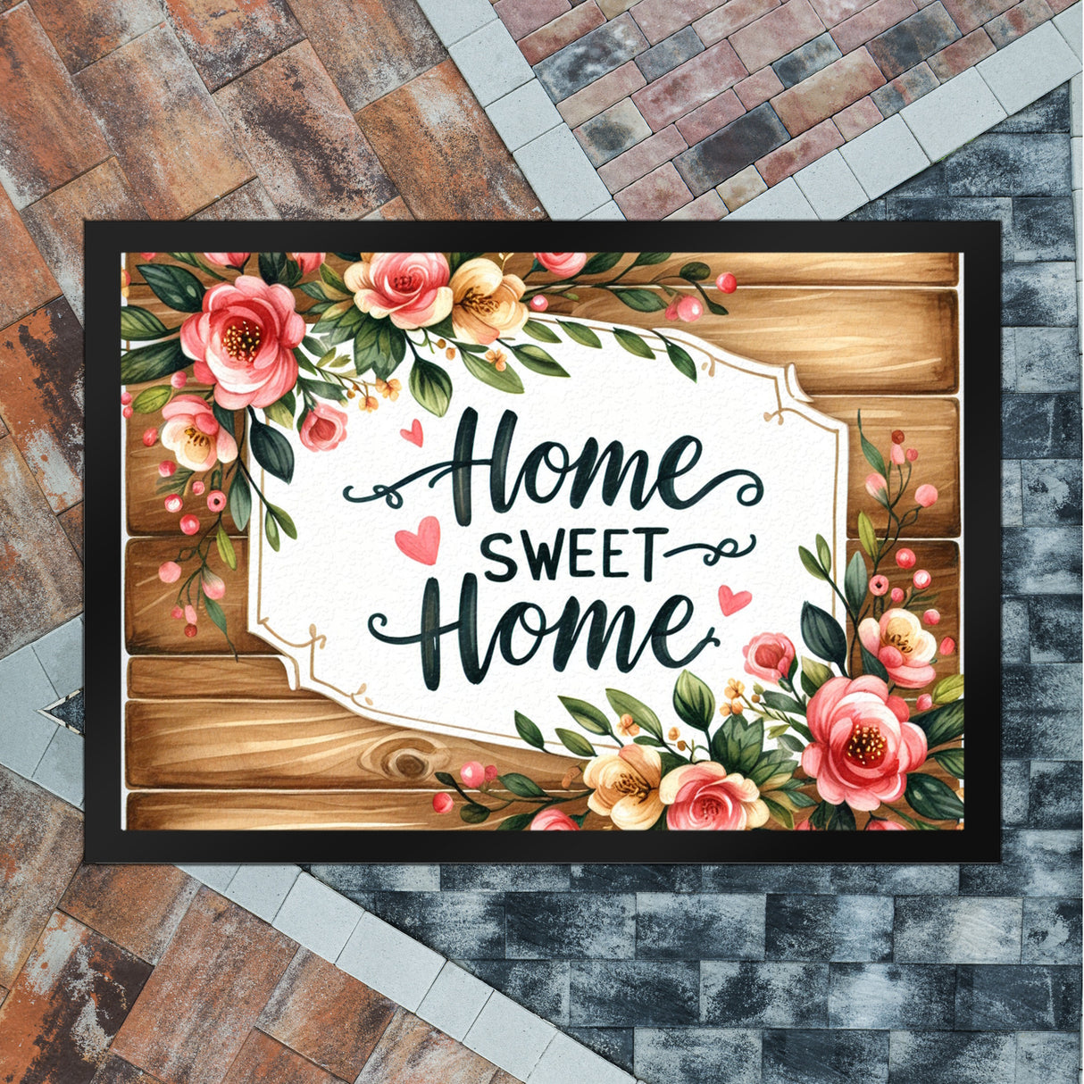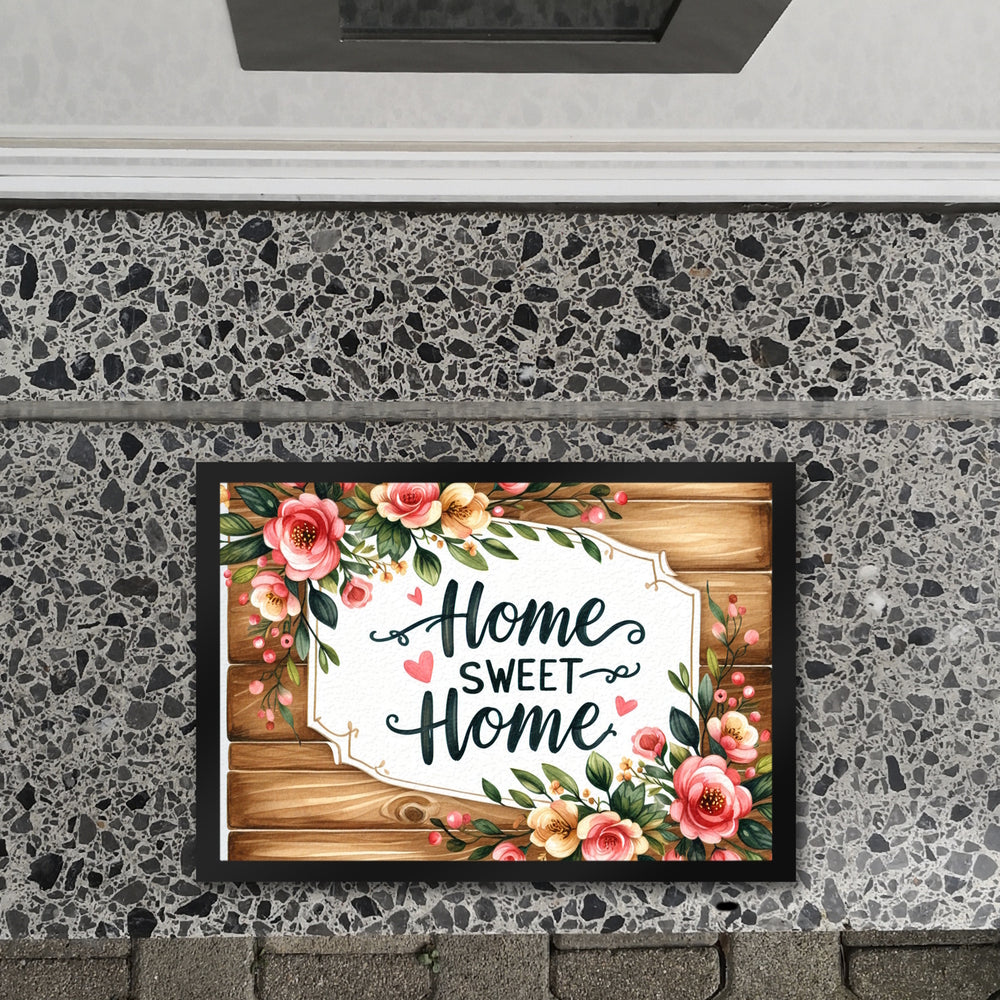 Home Sweet Home Fußmatte mit Blumen Motiv