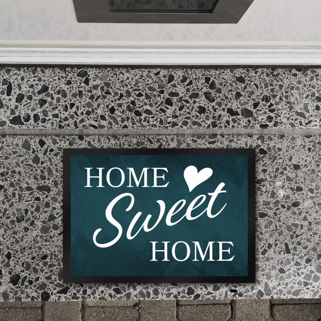 Home Sweet Home Fußmatte in 35x50 cm mit mintfarbenem Hintergrund