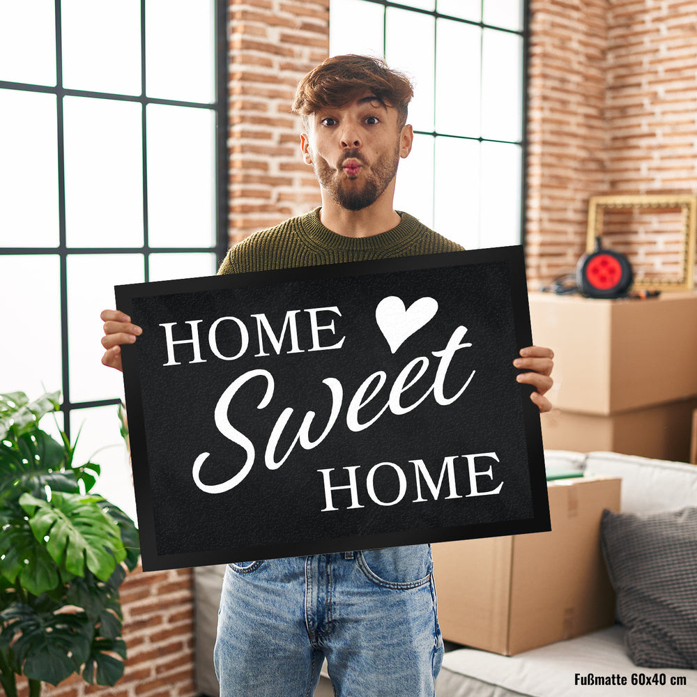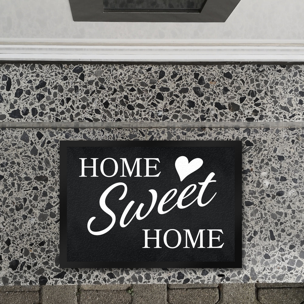 - 1x Home Sweet Home Fußmatte mit eleganter Aufschrift auf schwarzem Hintergrund in der gewählten Größe