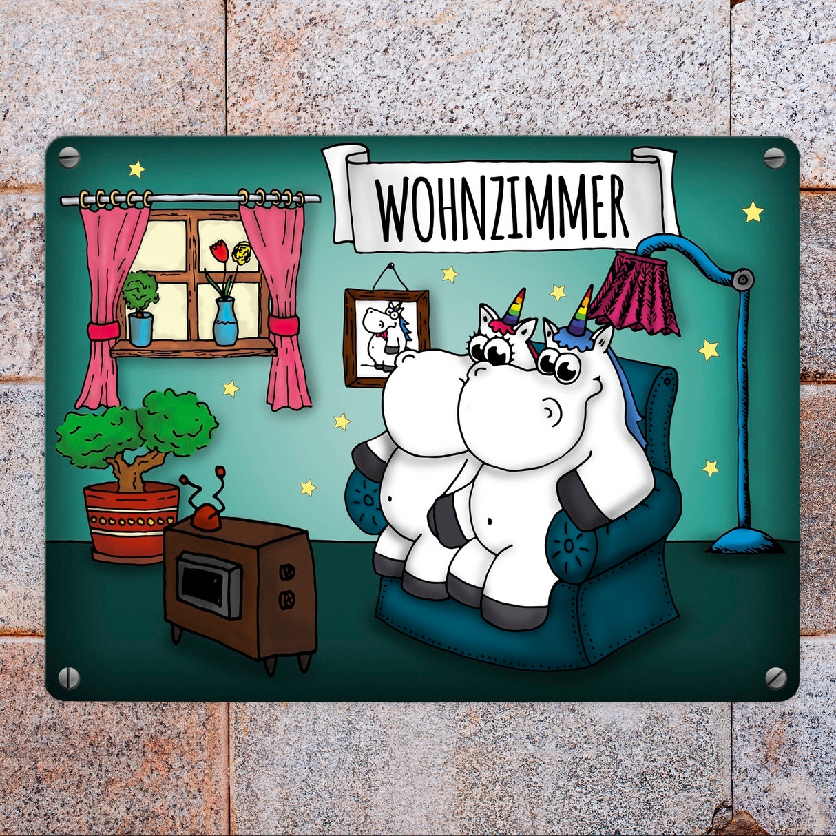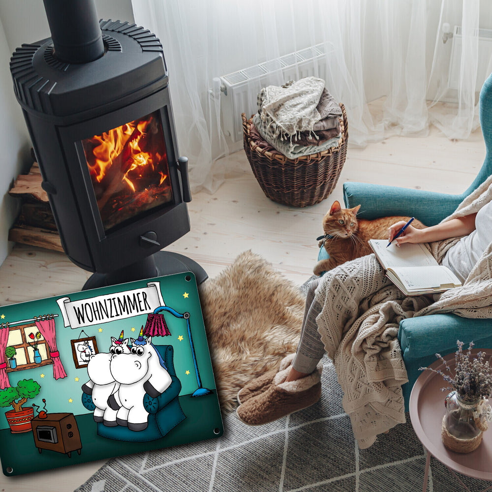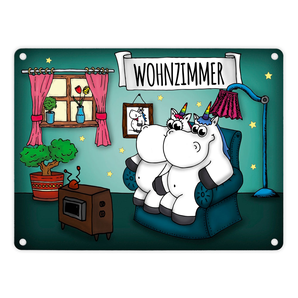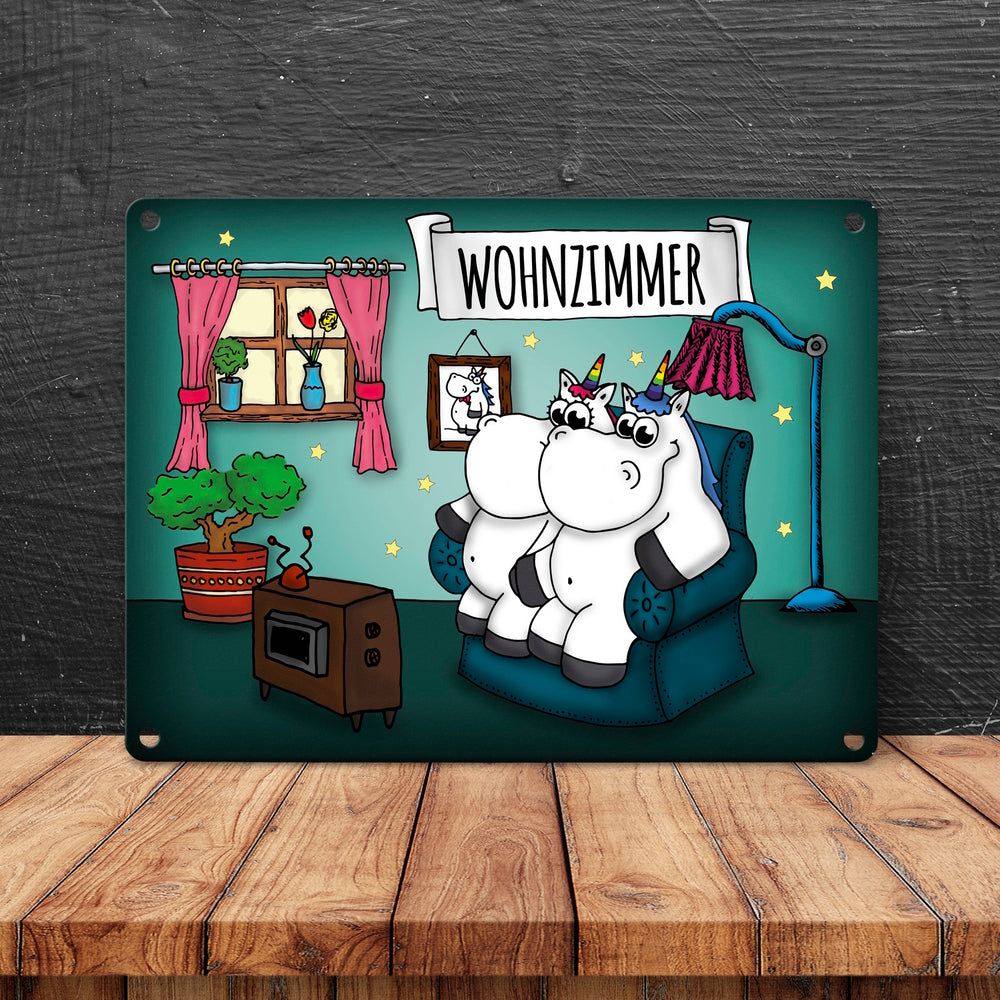 • Lieferumfang: Honeycorns Metallschild mit Einhorn Wohnzimmer Motiv