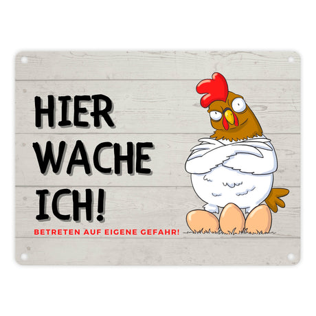 Huhn mit Eiern Metallschild in 15x20 cm mit Spruch Hier wache ich! Betreten auf eigene Gefahr