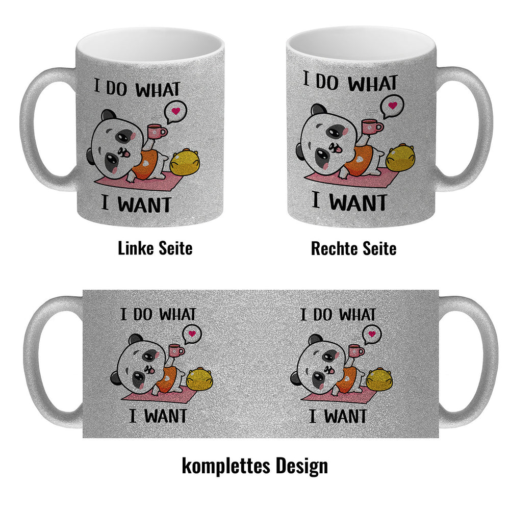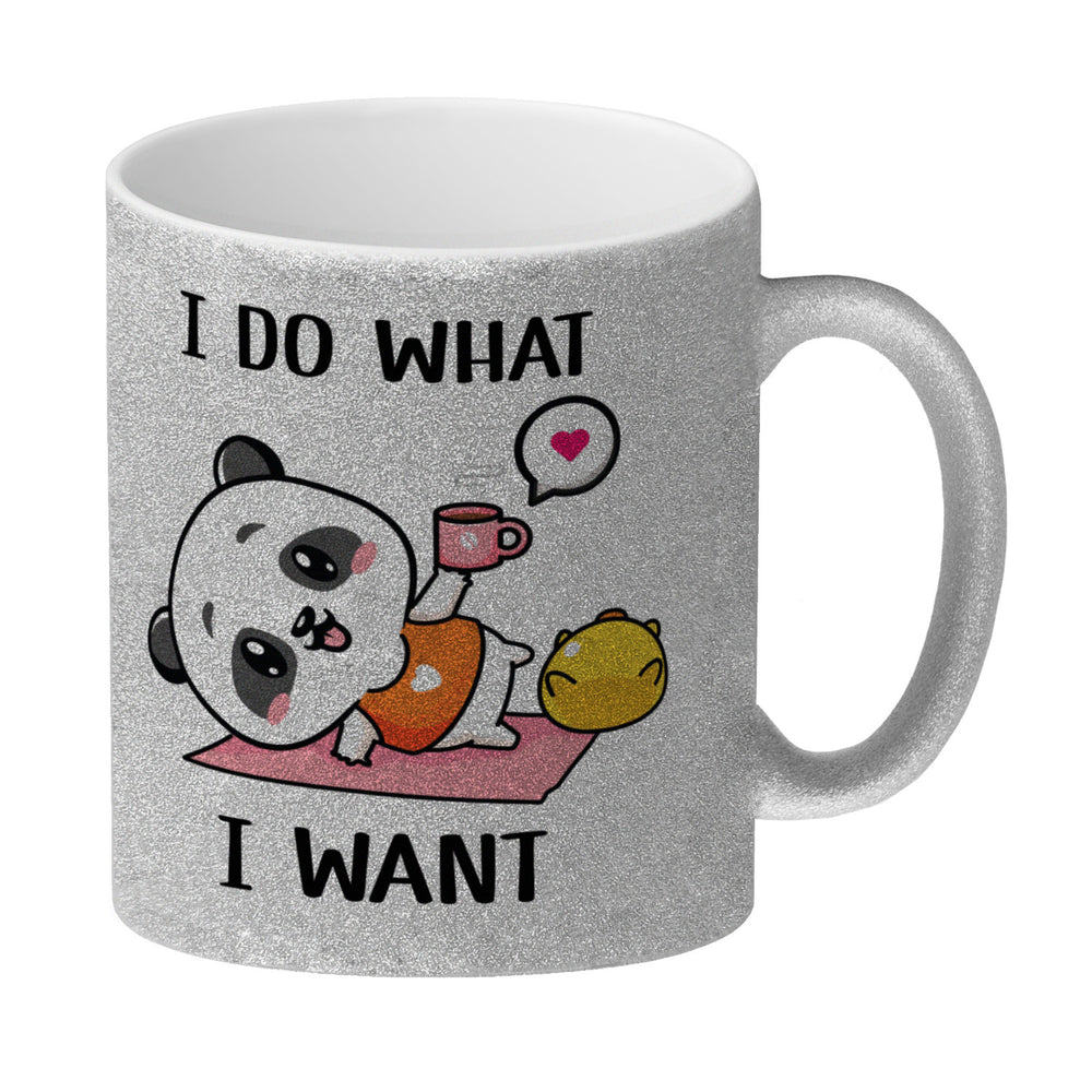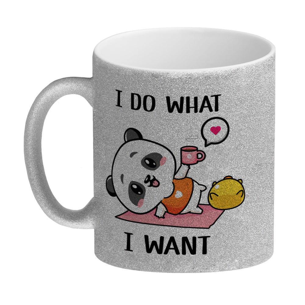 Dieser I do what I want Panda Kaffeebecher ist das ultimative Geschenk für deine Lieblingskollegin zum Geburtstag. Er ist ein origineller Kaffeebecher mit Pandamotiv, der auf beiden Seiten einen süßen Panda beim Aerobic mit Kaffee in der Hand zeigt. Der Spruch I do what I want erinnert an die Selbstbestimmung und selbstbestimmtes Handeln. Er ist in unterschiedlichen Varianten erhältlich: Als weiße Standardtasse, mit farbigem Henkel und Innenseite, als edle Glastasse oder in der exklusiven Silberedition mit Glitzereffekt. Mit Sorgfalt in Handarbeit hergestellt in Deutschland, wird dieser Kaffeetasse ein langlebiger Begleiter im Alltag sein. Überzeug dich selbst und schenke jemandem diesen originellen Kaffeebecher!