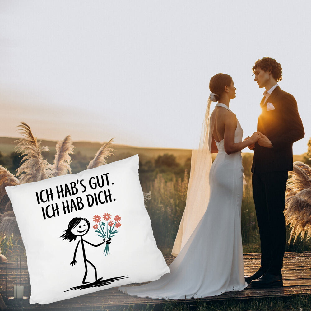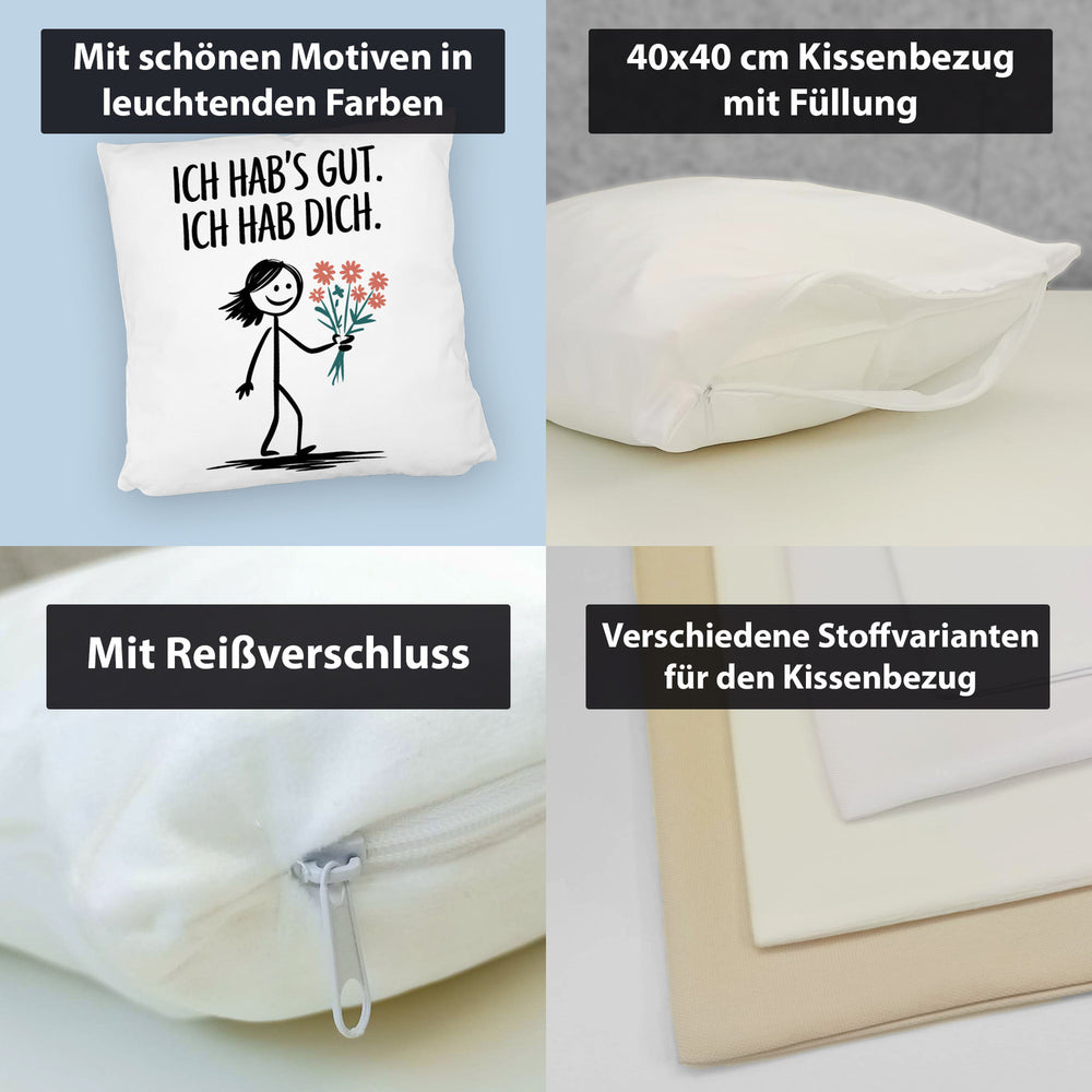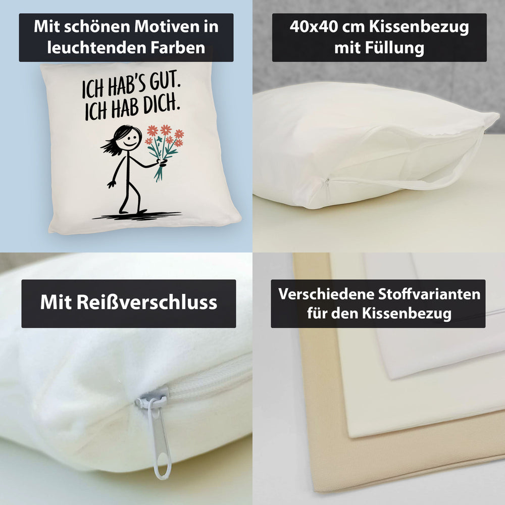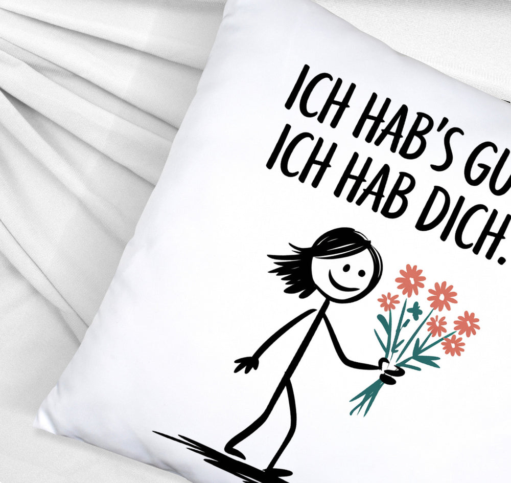 • 1x Ich hab's gut - Ich hab dich Kissen mit Strichmännchen in der gewählten Ausführung