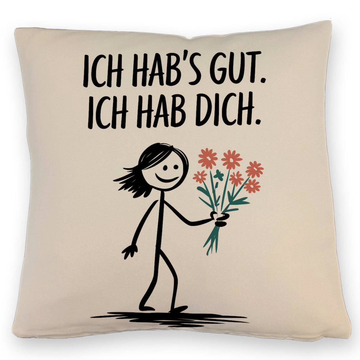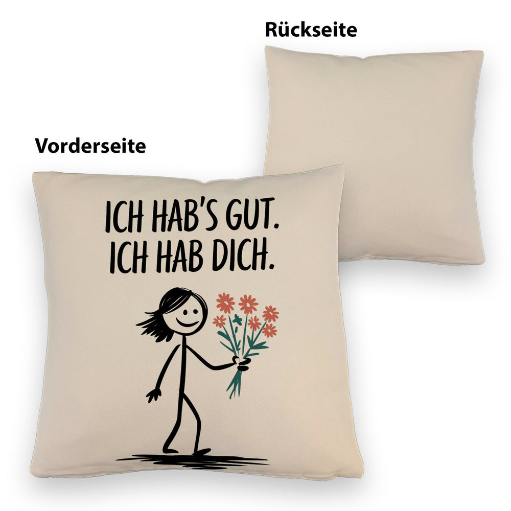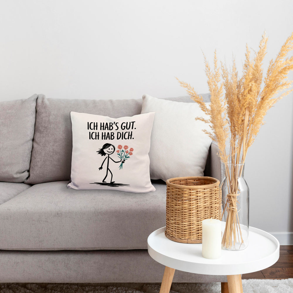 Ich hab's gut - Ich hab dich Kissen mit Strichmännchen