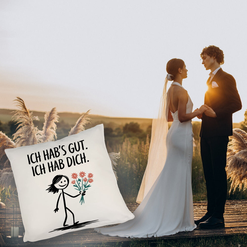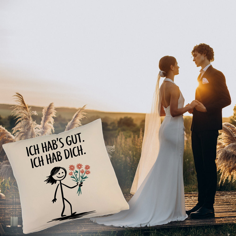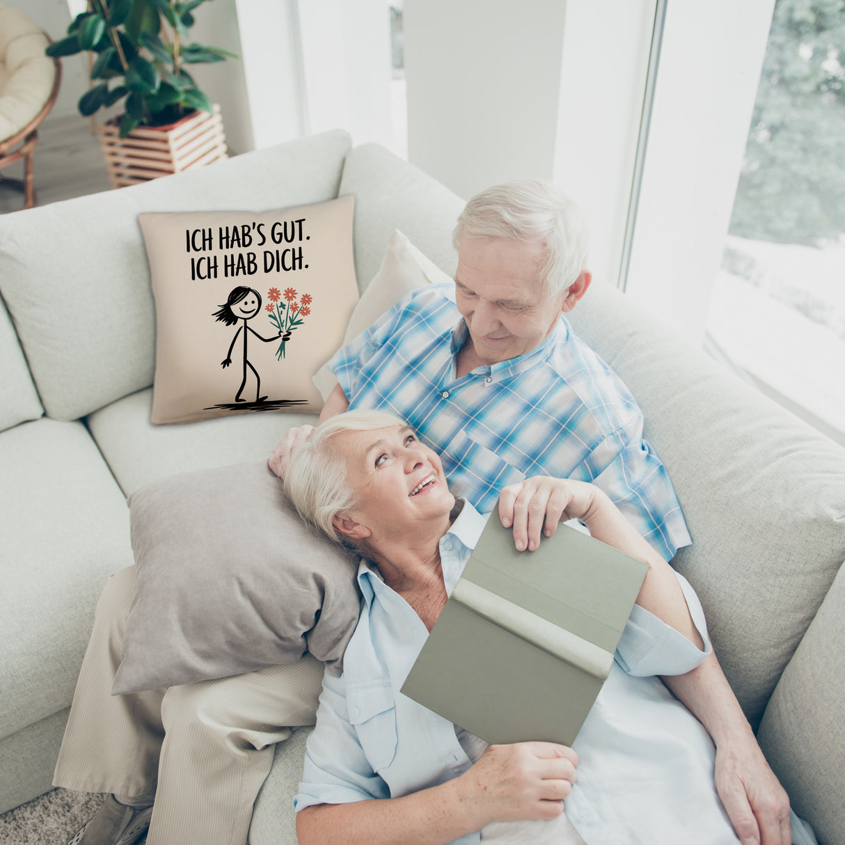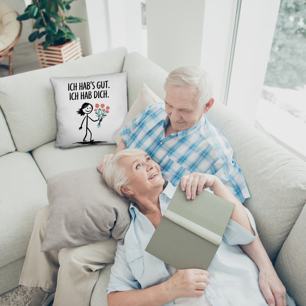 Ich hab's gut - Ich hab dich Kissen mit Strichmännchen