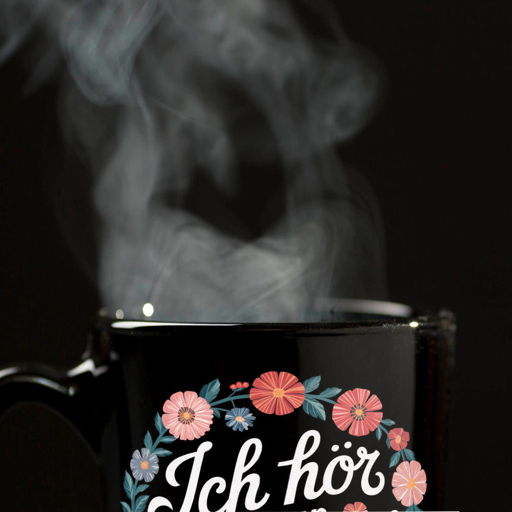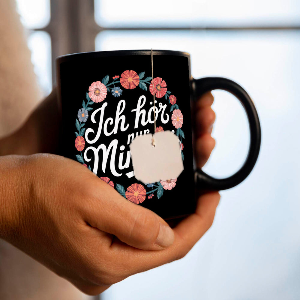 - Stopp mimimi, bitte! Entdecke die brillante "Ich hör nur mimimi" Tasse in tiefem Schwarz. Diese Kaffetasse kombiniert Vintage-Illustration mit einer verspielten, geschwungenen Schriftart. Der florale Blumenkranz setzt dem Ganzen die Krone auf und macht jede Kaffeepause zu einem stilvollen Erlebnis.