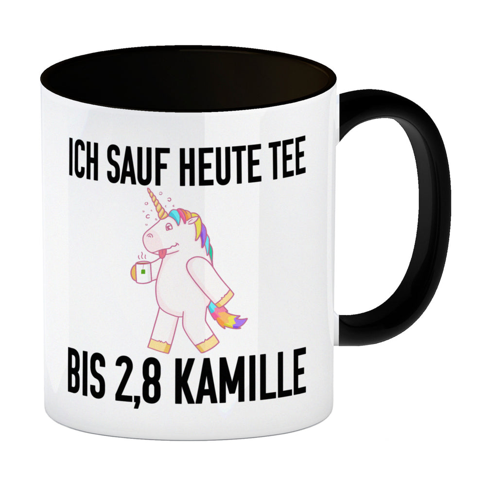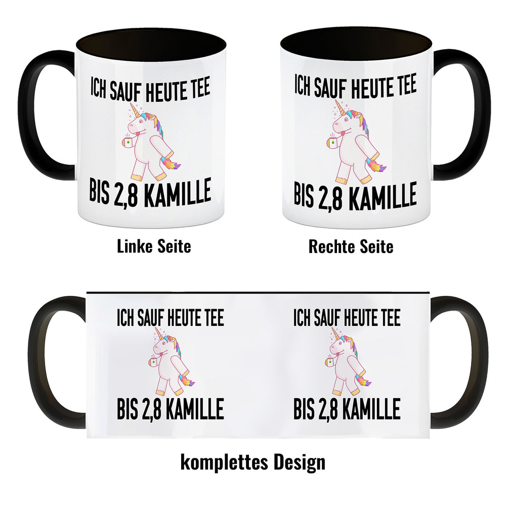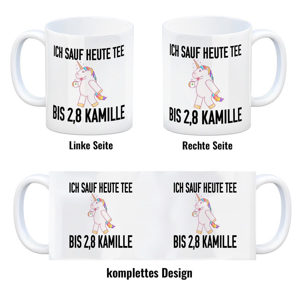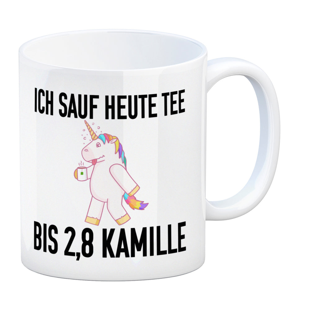 - 1x Ich sauf heute Tee bis 2,8 Kamille Kaffeebecher mit Einhorn in der gewählten Ausführung
