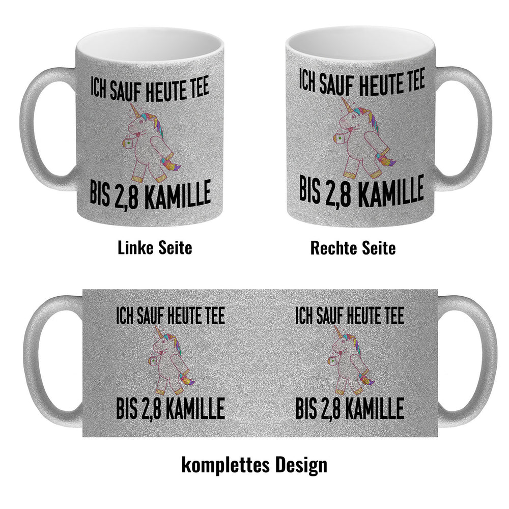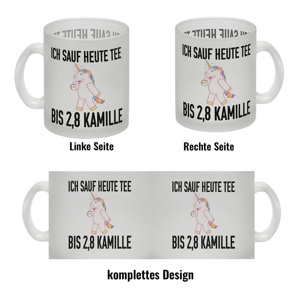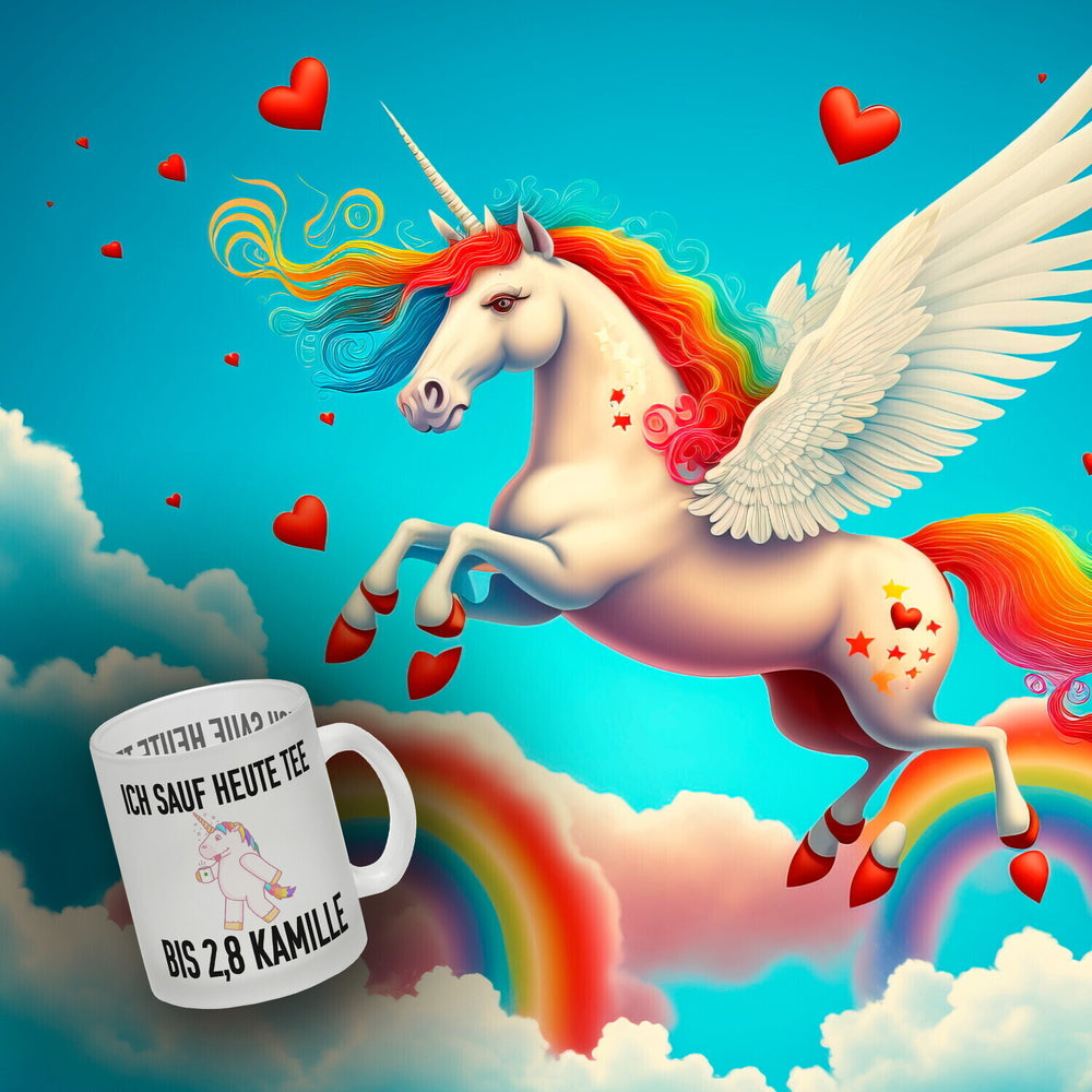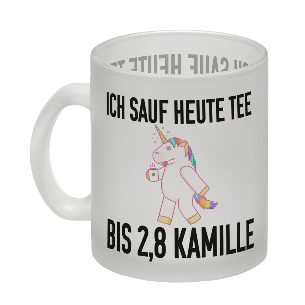 - 1x Ich sauf heute Tee bis 2,8 Kamille Kaffeebecher mit Einhorn in der gewählten Ausführung